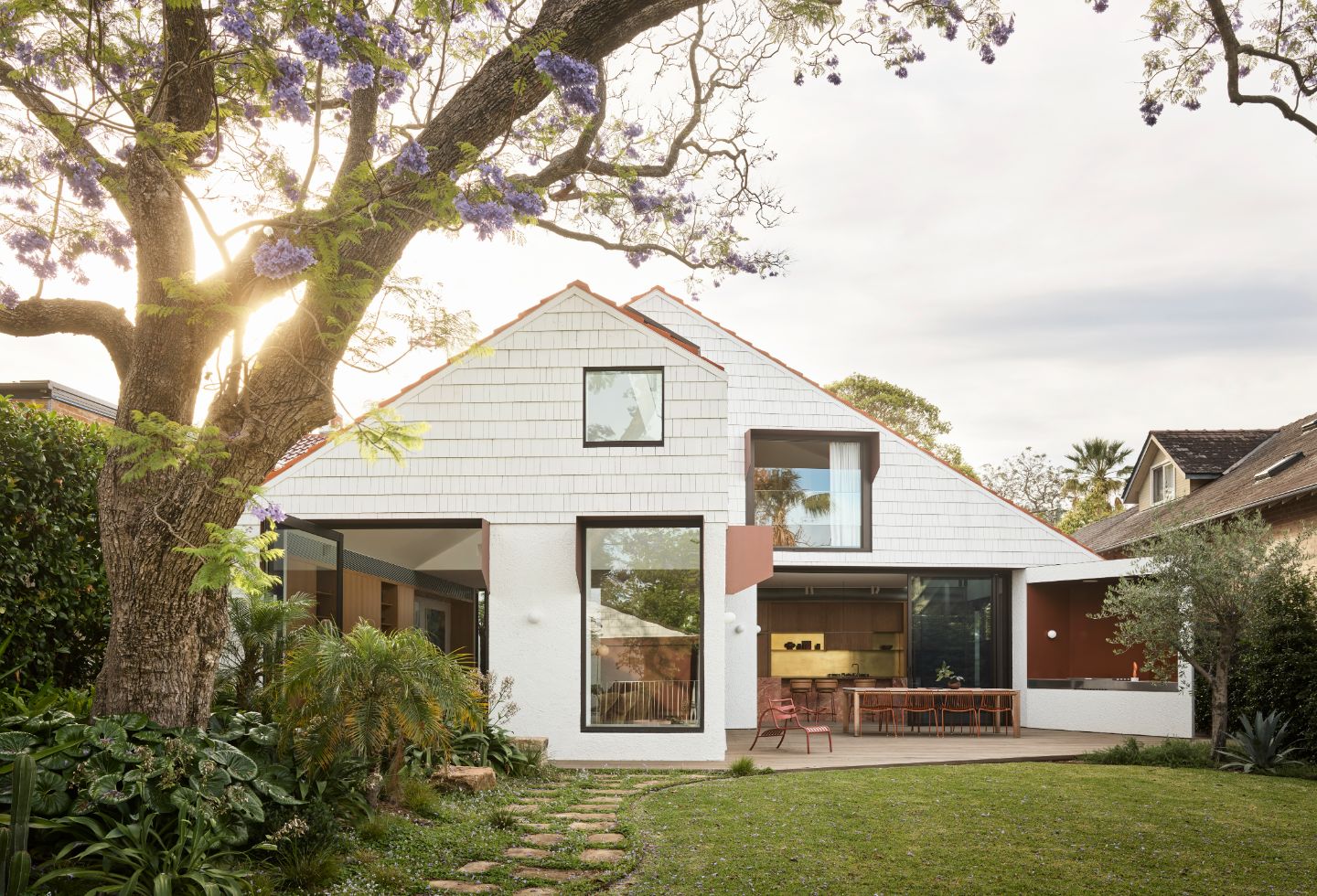 Skilfully planned around the site’s established gardens and Jacaranda tree, Alpha House transforms a Federation cottage in Sydney’s lower north shore into a warm and generous family residence that encourages a sense of togetherness.