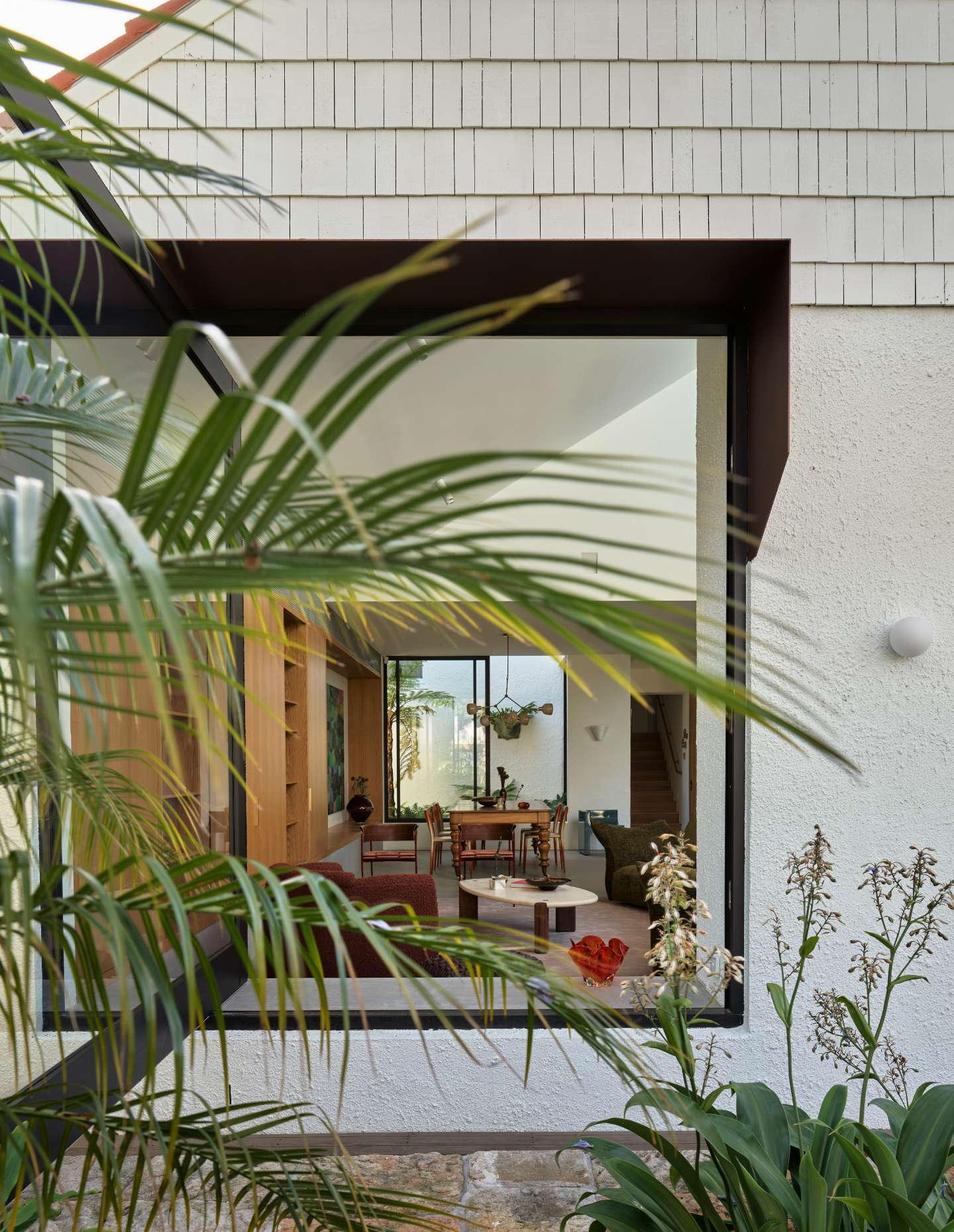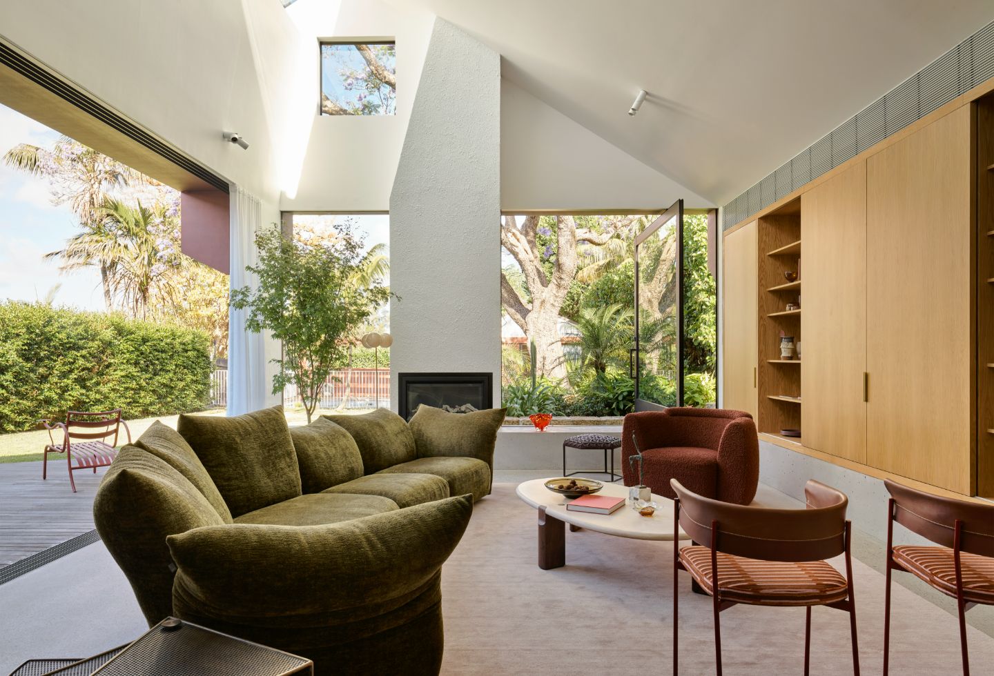 The project as a whole is spatially arranged to optimise the established gardens and Jacaranda tree, transforming it into a warm and generous family residence that encourages a sense of togetherness. Testament to Studio Prineas’ volumetric understanding of space, the home’s previous incongruous additions are replaced with an expansive, L-shaped volume and realignment so that “the internal level change now affords a greater connection between the principal living zones and landscape,” as Eva-Marie Prineas, principal of Studio Prineas explains.