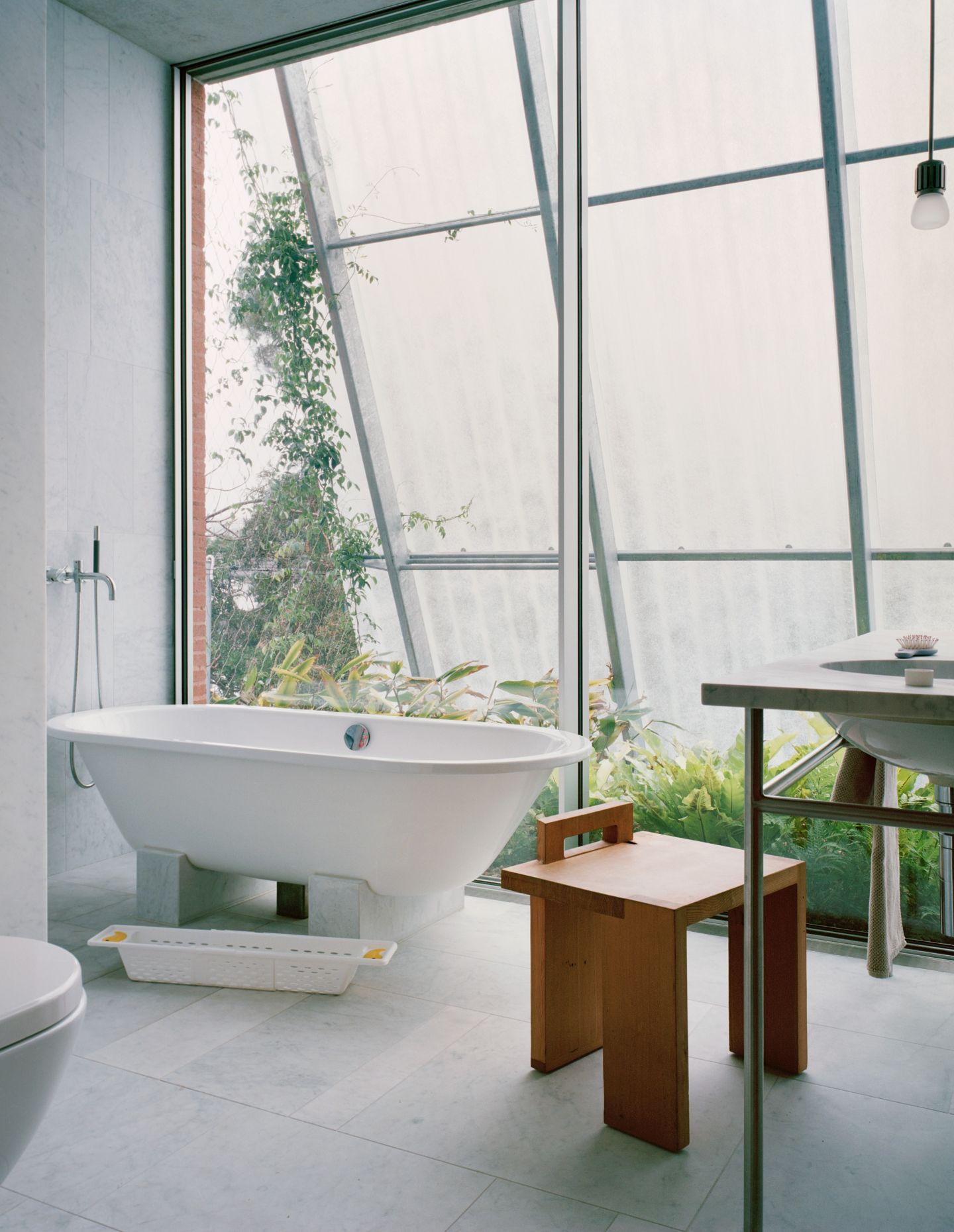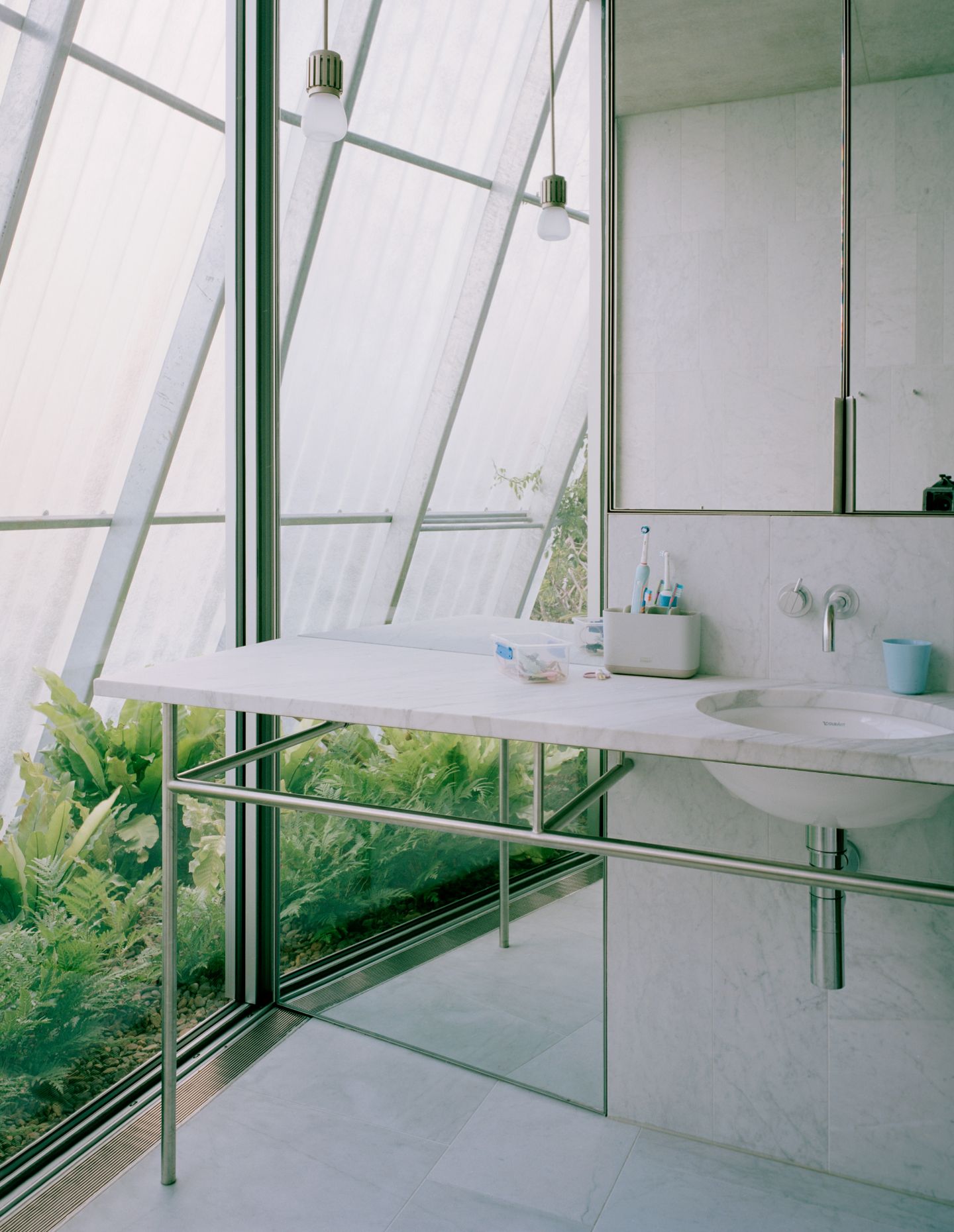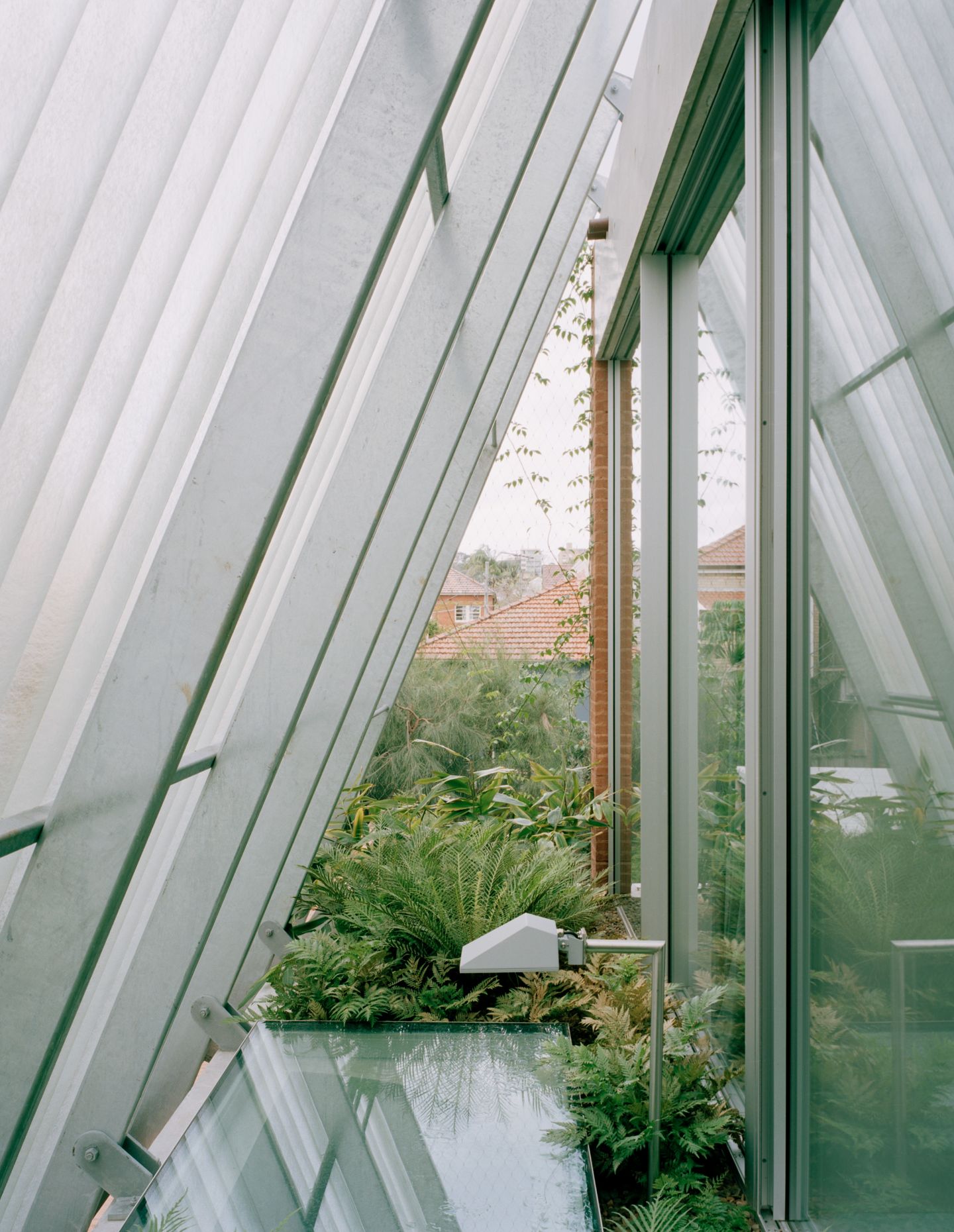 Operable wall-size windows by Vitrocsa invite the carefully composed gardens within. On the top floor, fibreglass screens create an immersive and private sanctuary from the busy streets beyond, posing the added benefit of stepping around council setback controls. These little pockets extend the bedrooms and bathrooms into the foliage – blending the functionality, such as the outdoor bath settled within the ferns.
