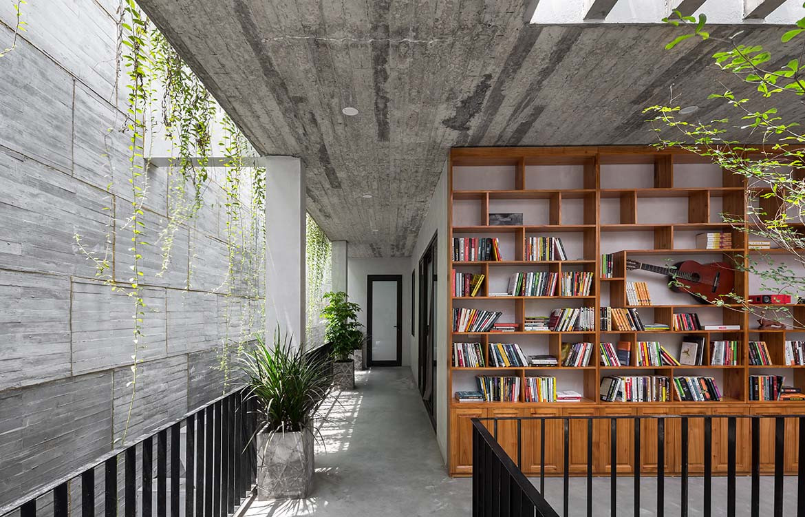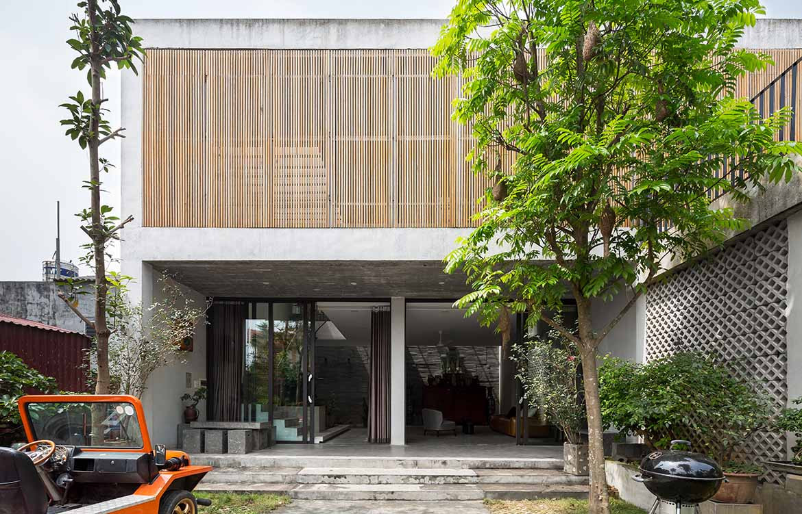B House, located in a suburban area of Hanoi in Vietnam, is the home of a concrete workshop owner. As might be expected, concrete became a main material for exploration in the project. And this proved to be a wonderful starting point for local architect Ta Dinh Van.