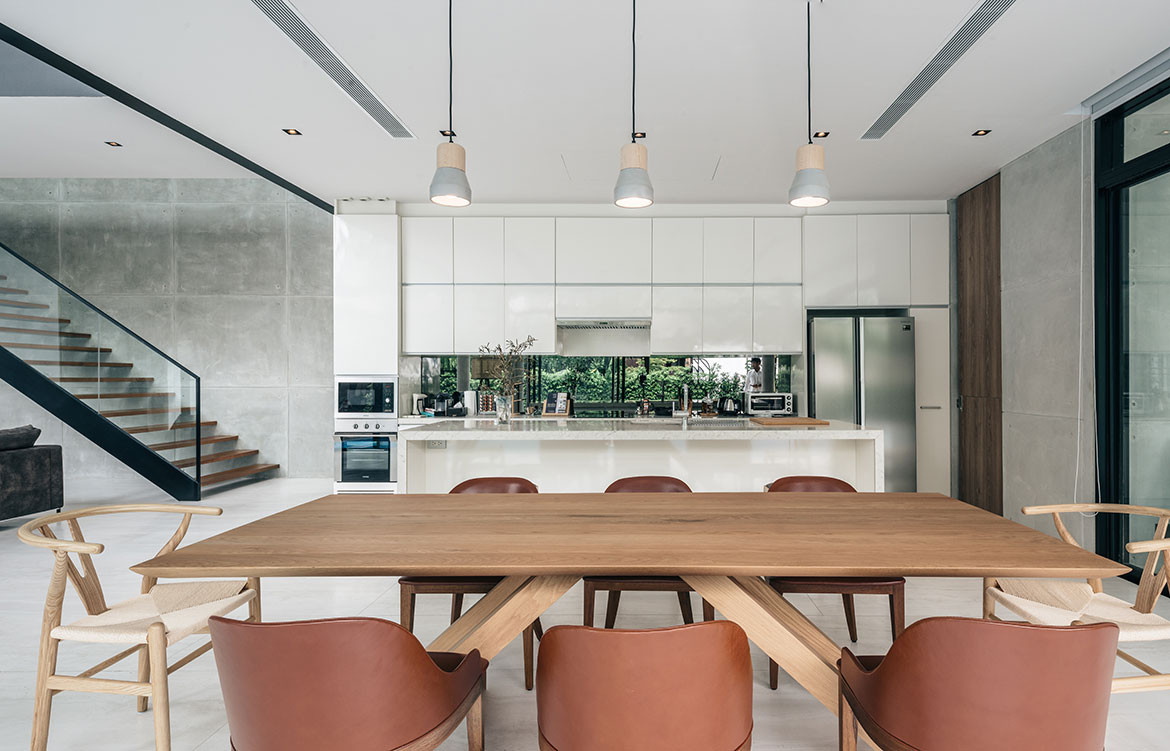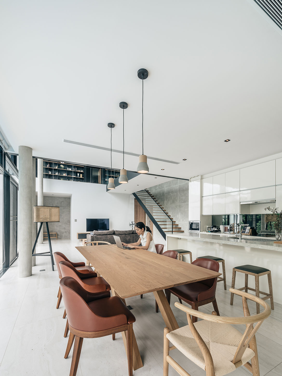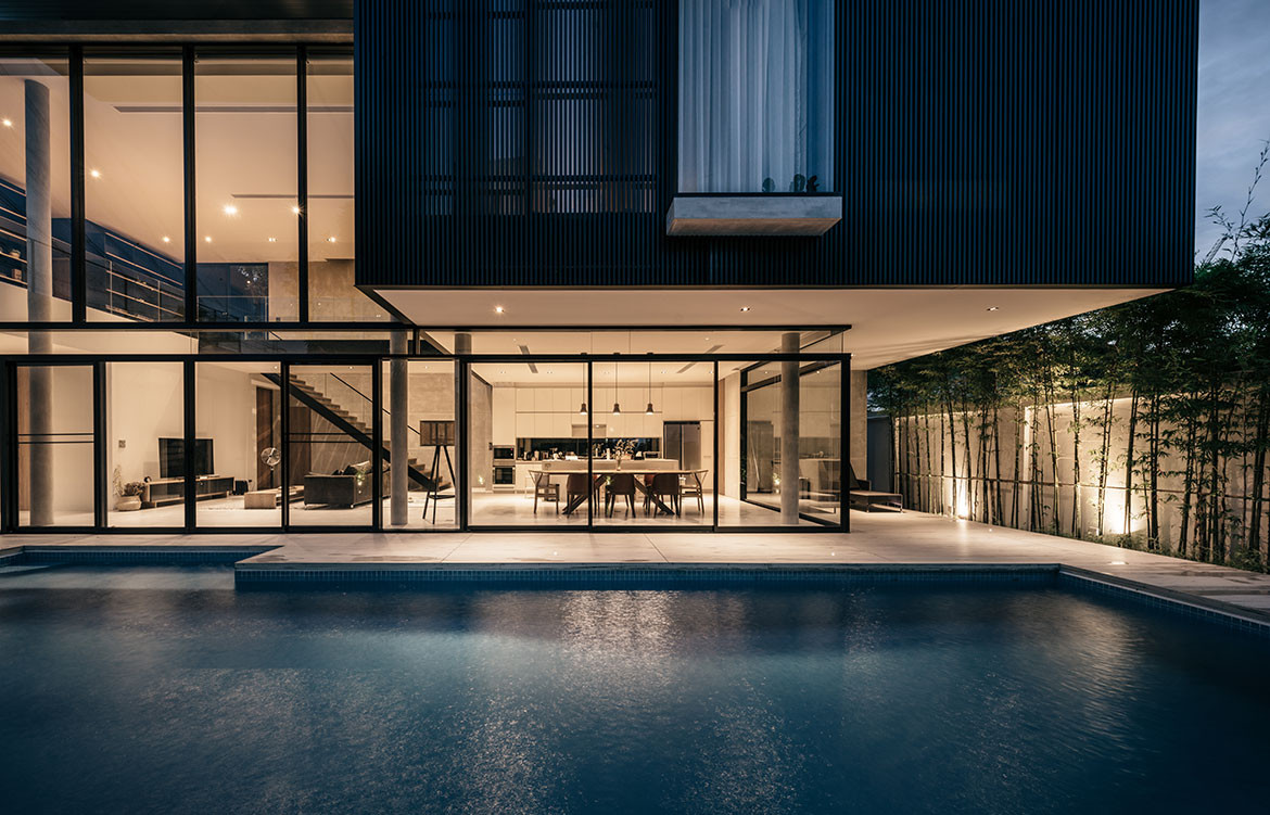 Located in Bangkok, the 500 square-metre-house is designed for an extended family whose old home still exists on the same site. The first task of the architect was, therefore, to understand not only the physical requirements, but also the socio-cultural specificities within the micro-scale of the family. Only when such understanding was established, could the design begin to translate both individual and collective needs into a unique spatial and formal configuration.