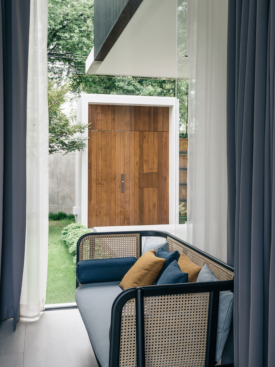 The second, but equally important question, was how the new house could be both independent from and linked to its predecessor. The aim was to give it a life of its own, yet not be completely separated from the old house that forms part of its immediate context. Most houses in Bangkok are usually surrounded by solid fences shielding the living spaces from their adjacent neighbours, here, the old house becomes the point of reference as to how the new one is to be oriented.
