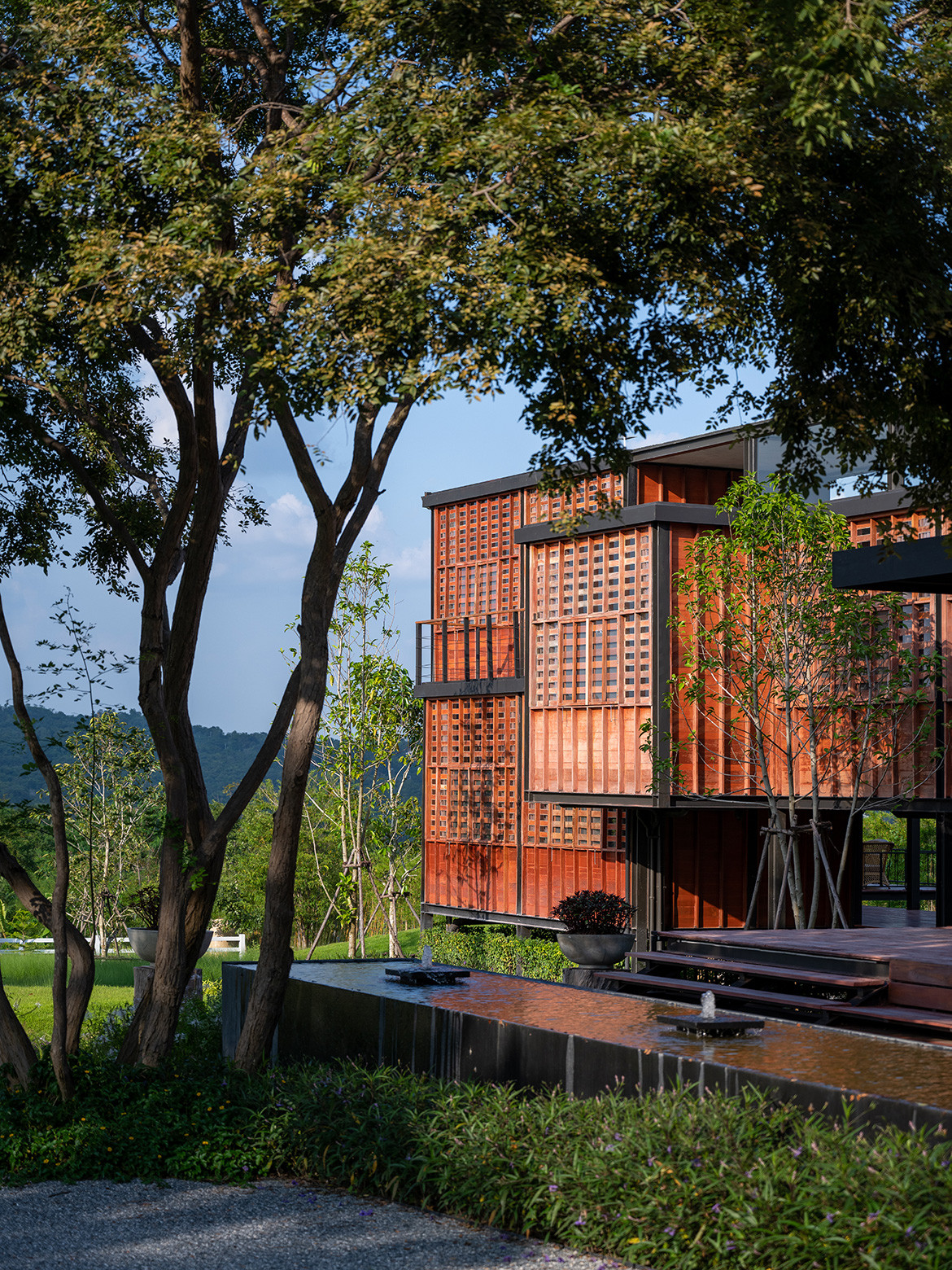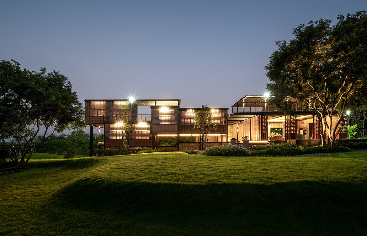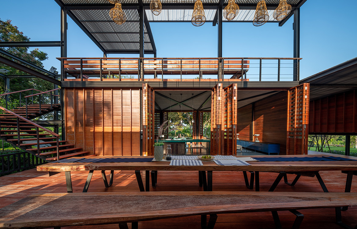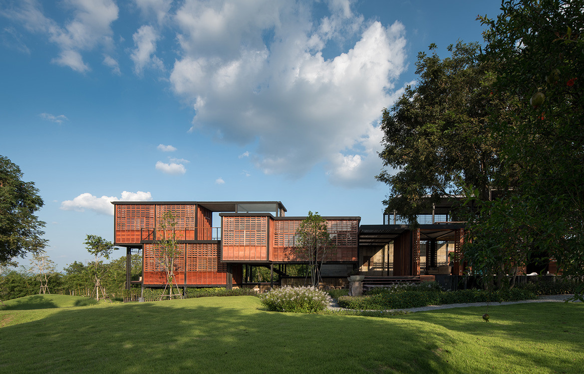An aspect of this was the way in which the architects used the traditional Korat House from Nakhon Ratchasima Province as an inspiration and a guide. The Korat House is a family of spaces within a single storey wooden structure, with a raised platform and light gable roof. It is a pre-fabricated structure using a modular wall system.