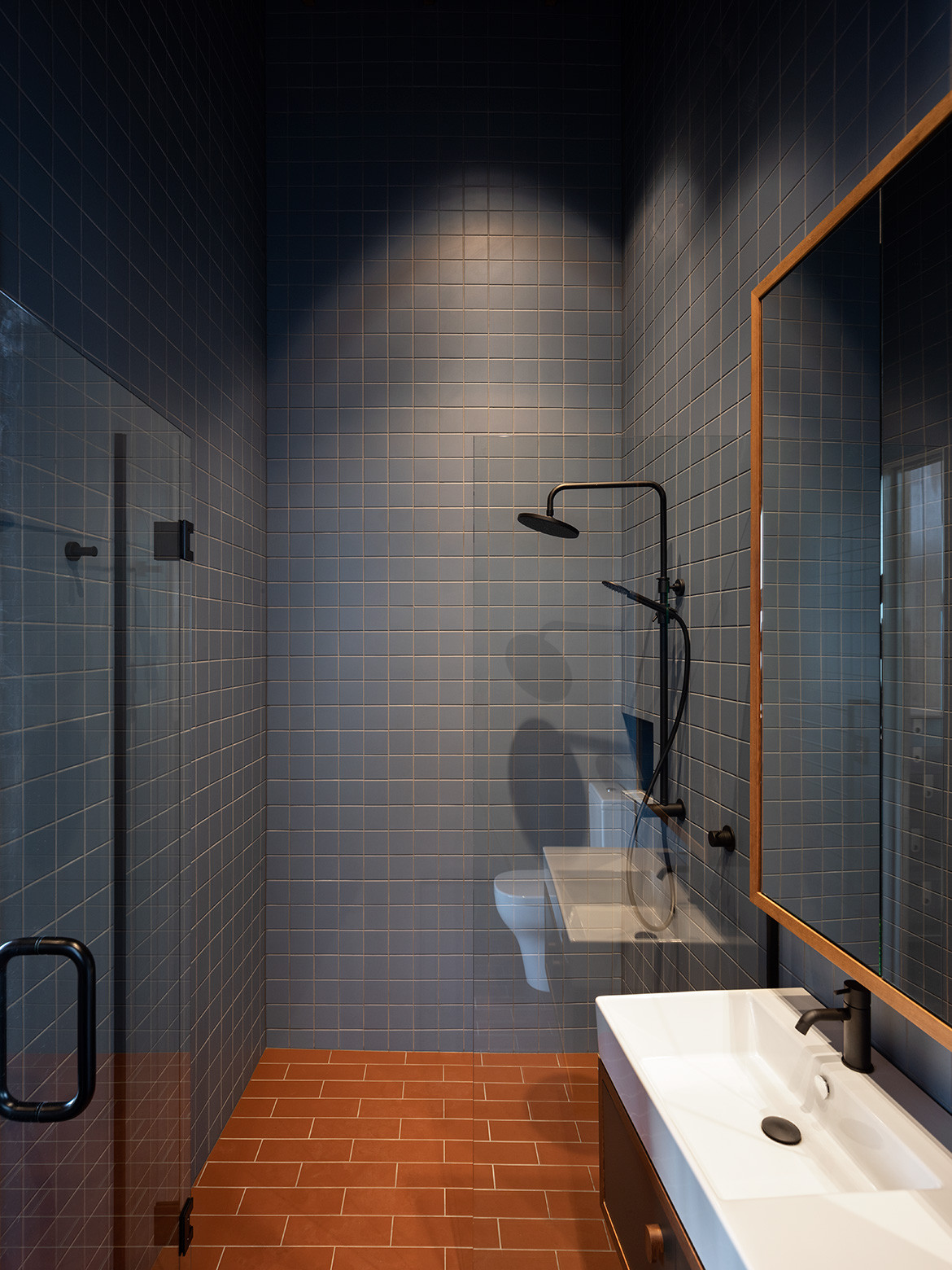 The house is cradled by the hill, but also close enough to the cliff edge to experience the power of the Pacific Ocean. The teal-blue sea below is visible but not accessible. Like a clifftop nest, the house feels exposed at one edge and increasingly protected the deeper you go inside. The thrill of sliding down the hill is captured in the wind and the great sweep of the plan.