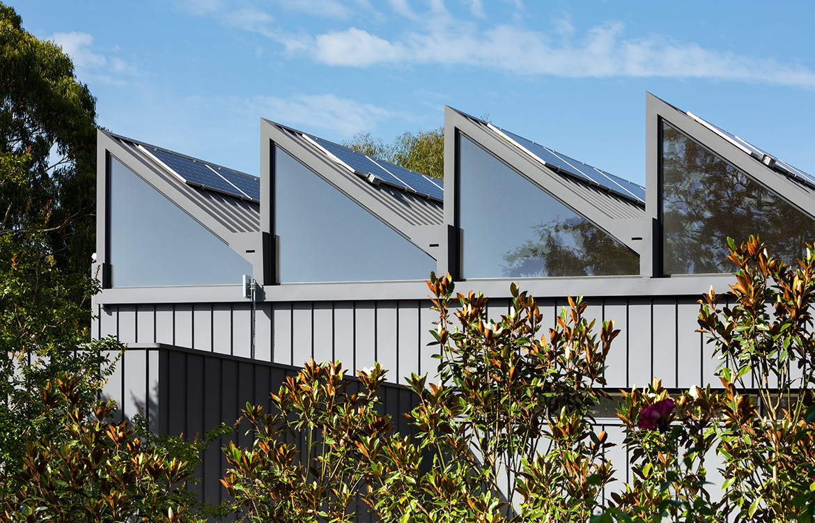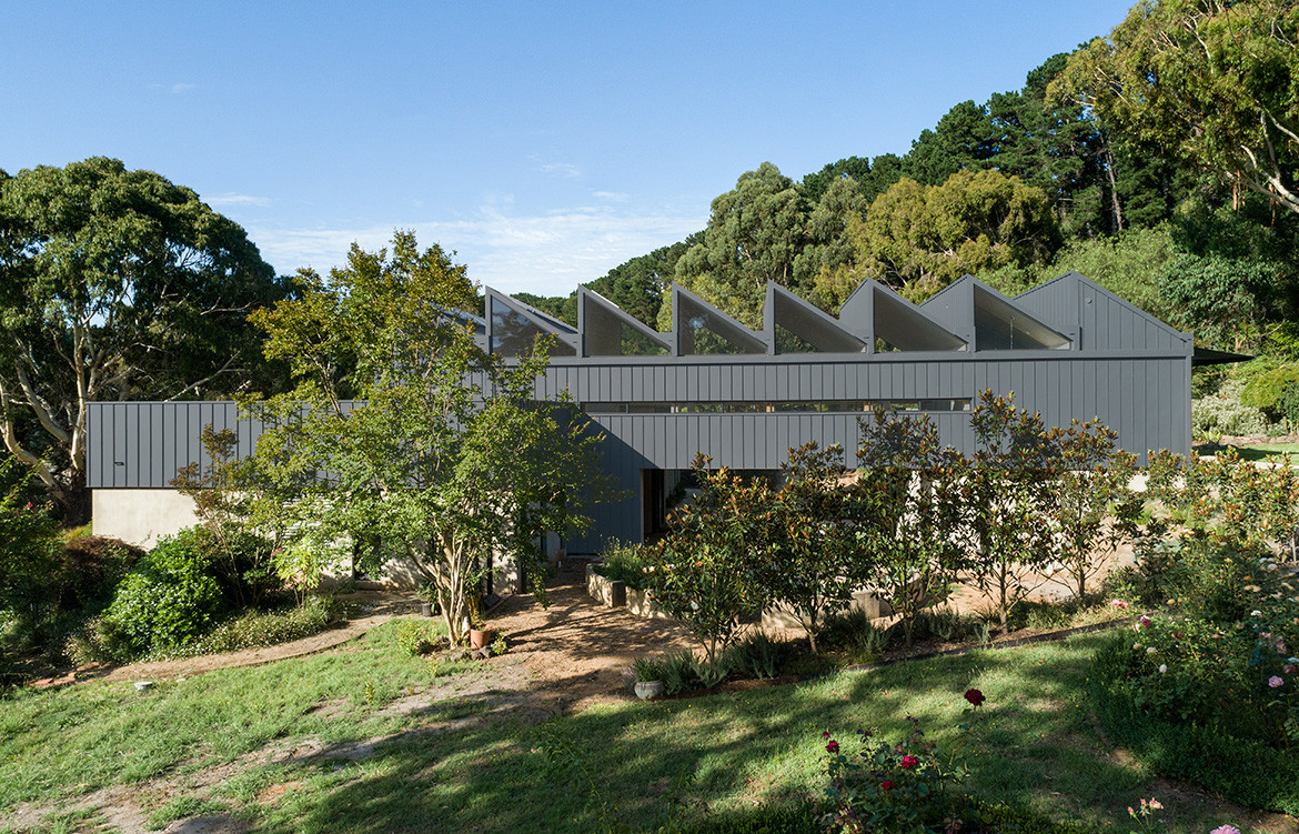 With a fall across the site of approximately four metres, one of the main issues was not only space but also, importantly, a connection to the northern garden, predominantly unused. So the brown bricks of the original house were rendered and a first floor addition, with a sawtooth-style roof, was created. “I wanted to pick up on the surrounding farm sheds as well as bringing the appropriate even-quality light into the studio (on the first floor, along with the main bedroom at one end and a guest bedroom at the other).”