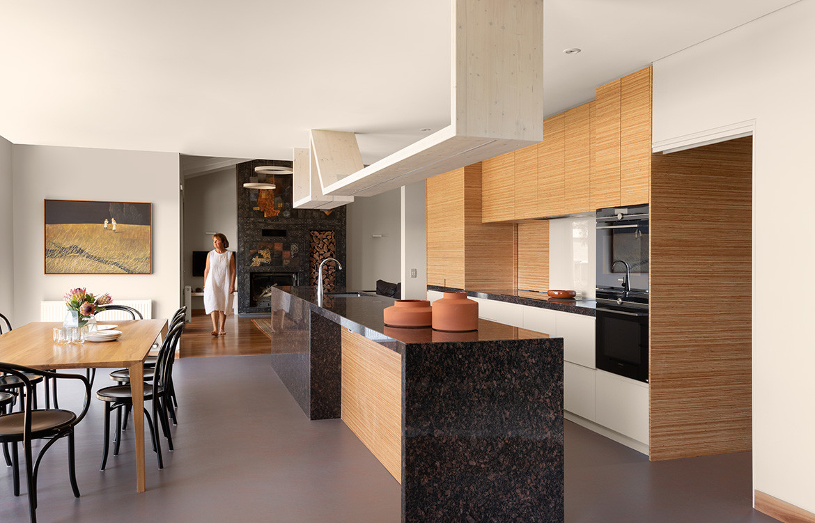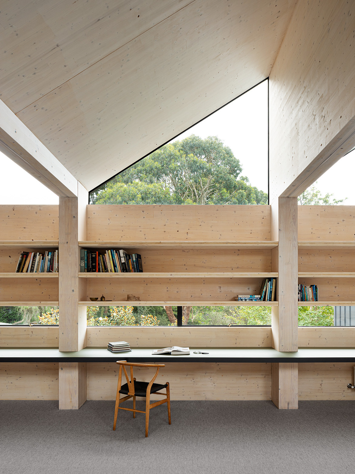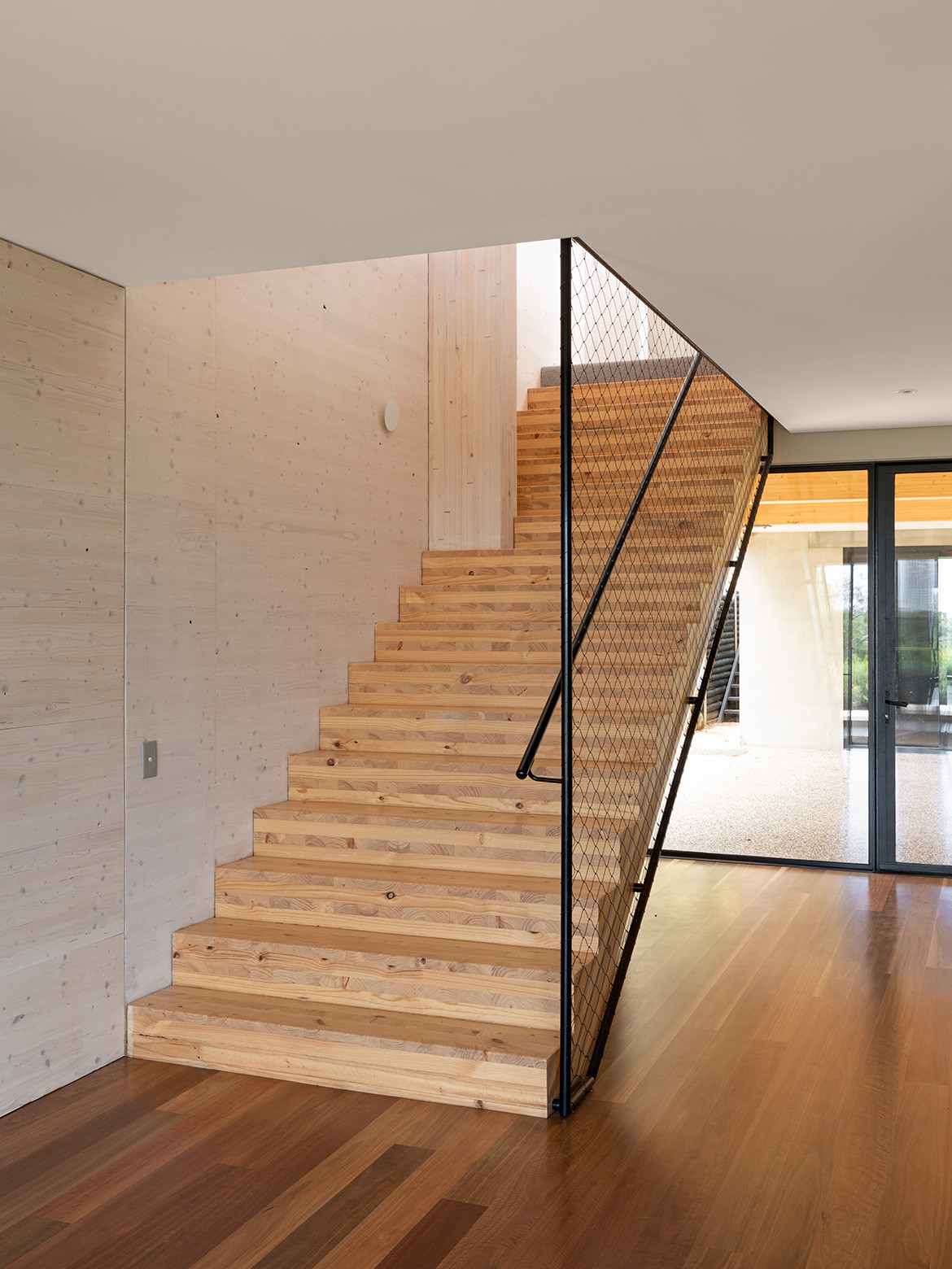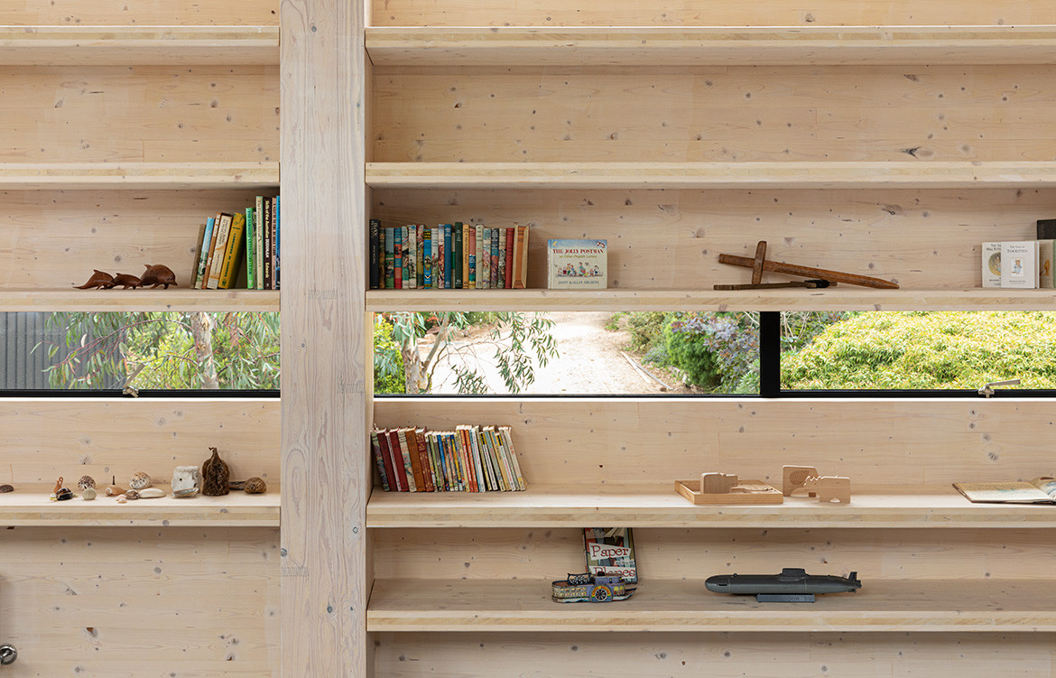 Designed for a couple with adult children and grandchildren, this house, located on Victoria’s Mornington Peninsula, is known as CLT, short for cross-laminated timber. “It was this material that drove the design; a material that could be fully expressed throughout the home, revealing its structure,” says architect Fiona Dunin, director of FMD Architects.