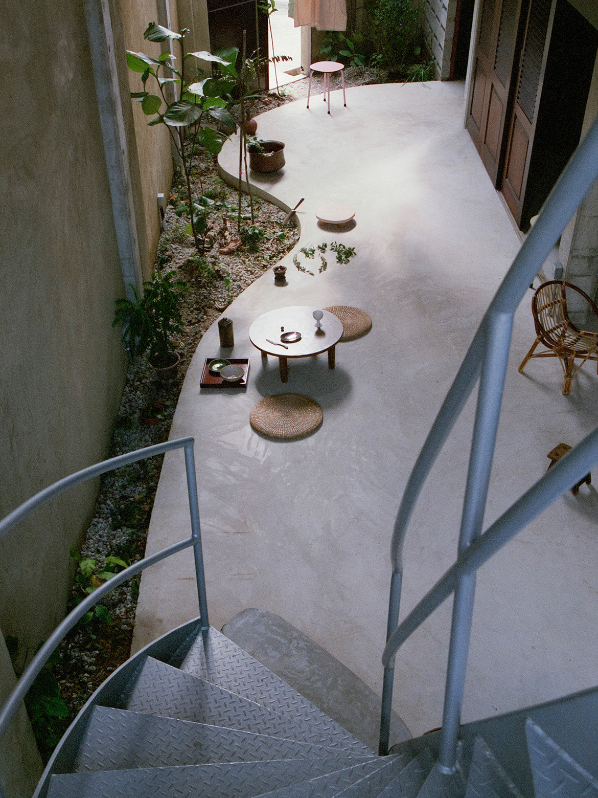 Ling Hao explains that to have created permanently enclosed rooms on this level would have changed the overall scale of the house, so “the floor becomes the furniture”. It may look Japanese, he says, but this is what traditional Malay houses look like – modest in scale, with low ceilings and the floor where everything happens. In this case, the timber also softens the interior against the hardness of the concrete.