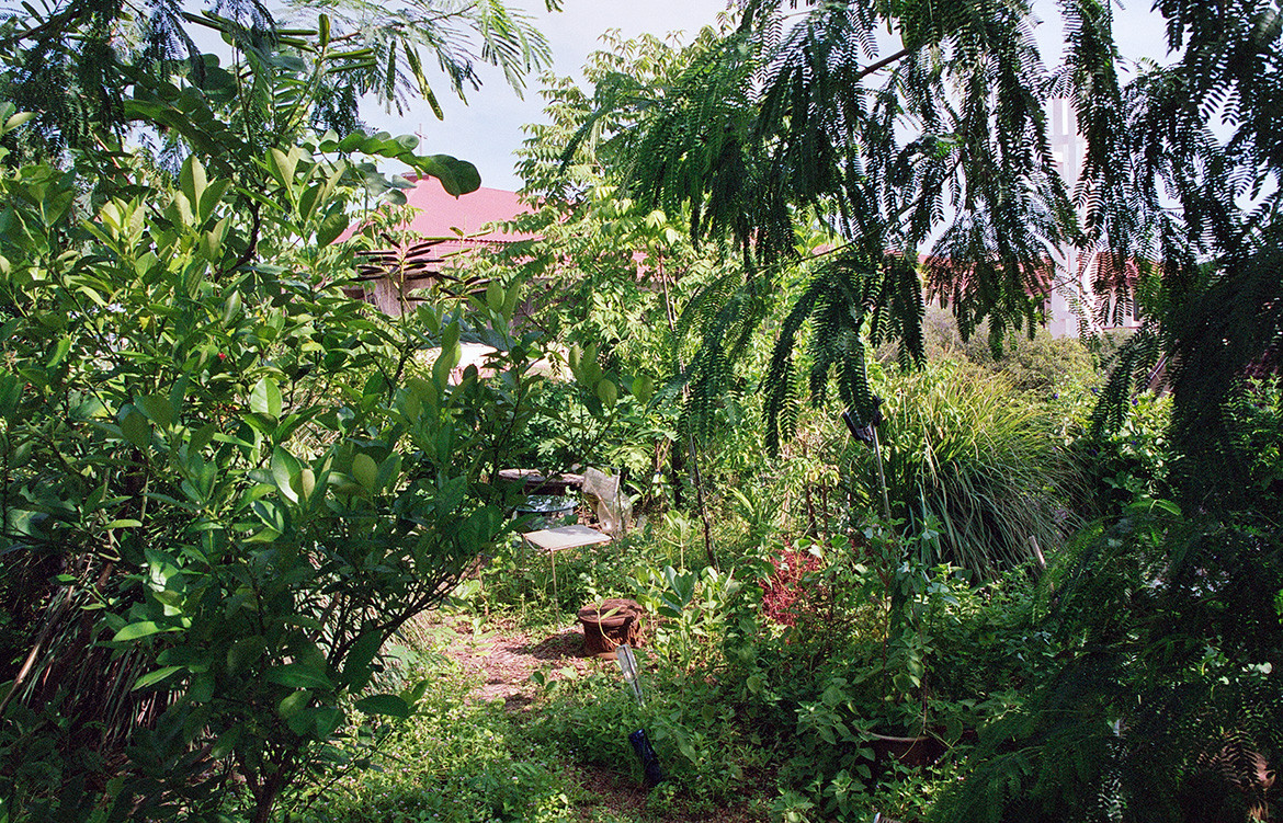 Most importantly, though, the house has been opened up to allow air movement. As for the rain pouring in and creating “puddles”, well, the lady of house is used to that from her younger years. She likes puddles and has even grown used to the caterpillars that ravage her vegetables and greenery.