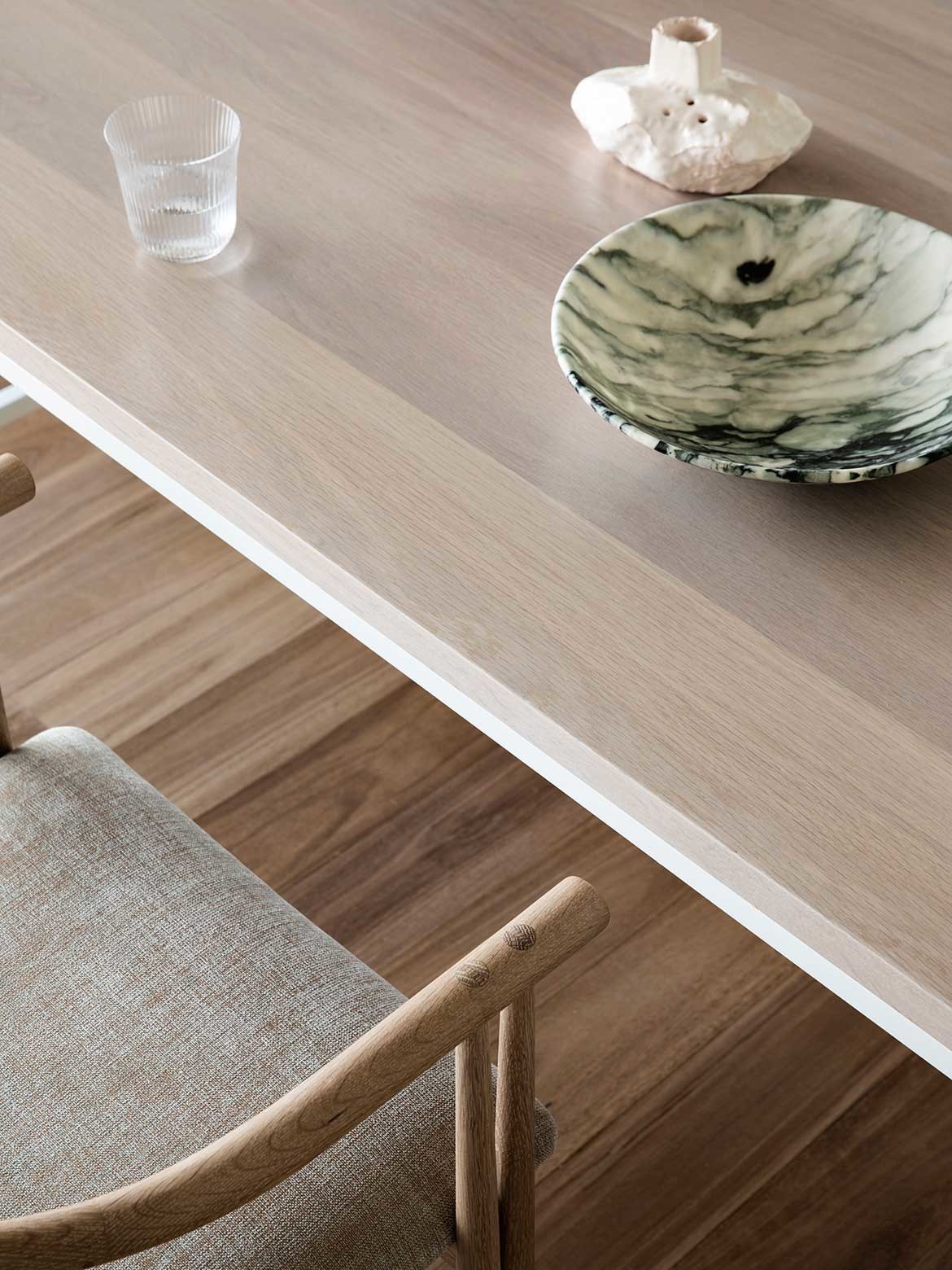 In addition to the meticulous spatial planning, Heliotropian House is visually defined by its refined monochrome palette. Unafraid of the strong contrasts, selected black elements play against the softer neutral tones throughout.