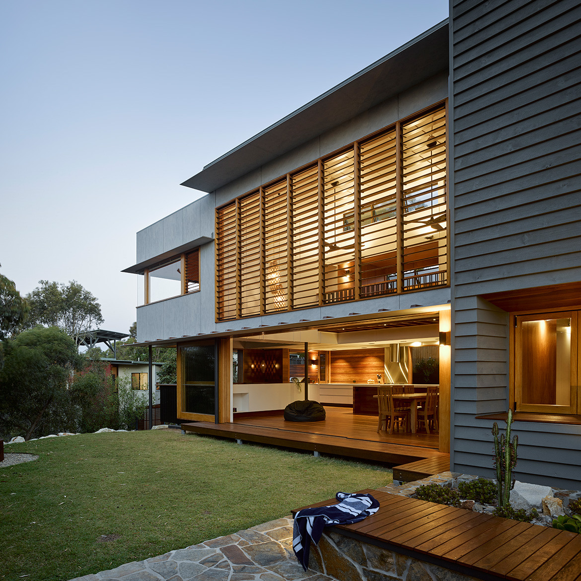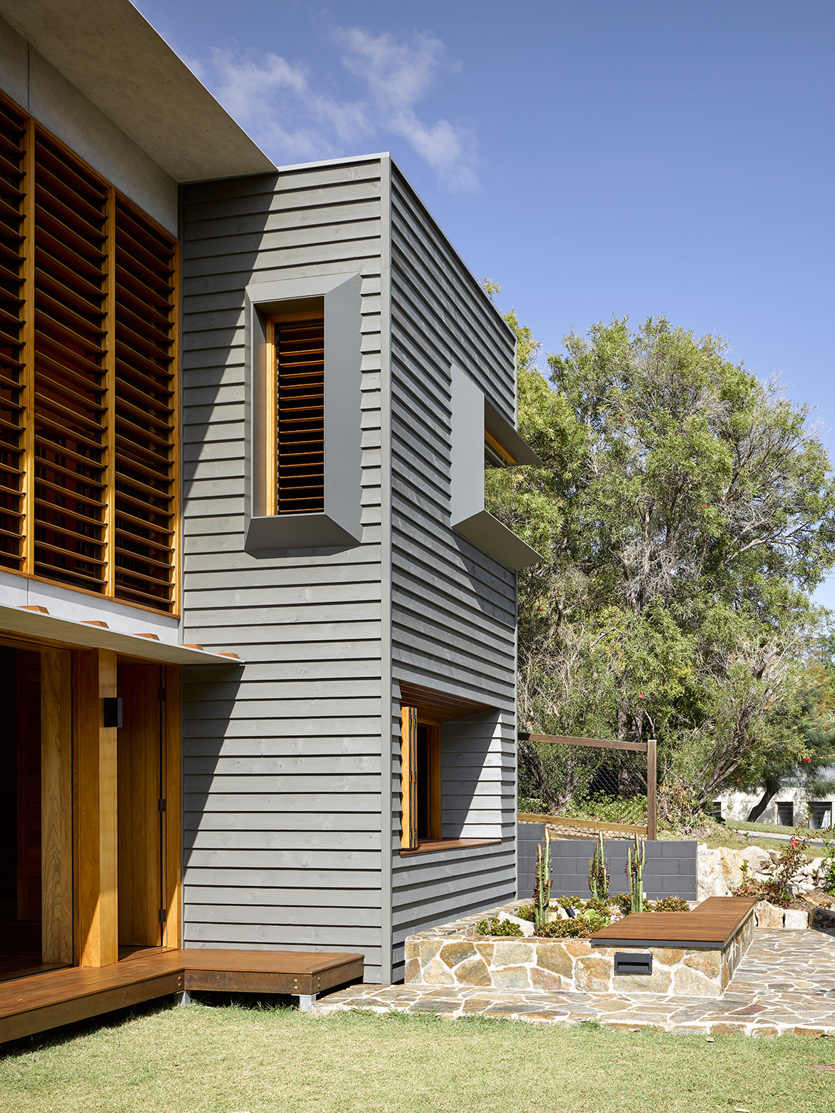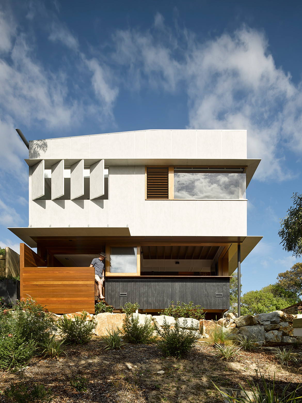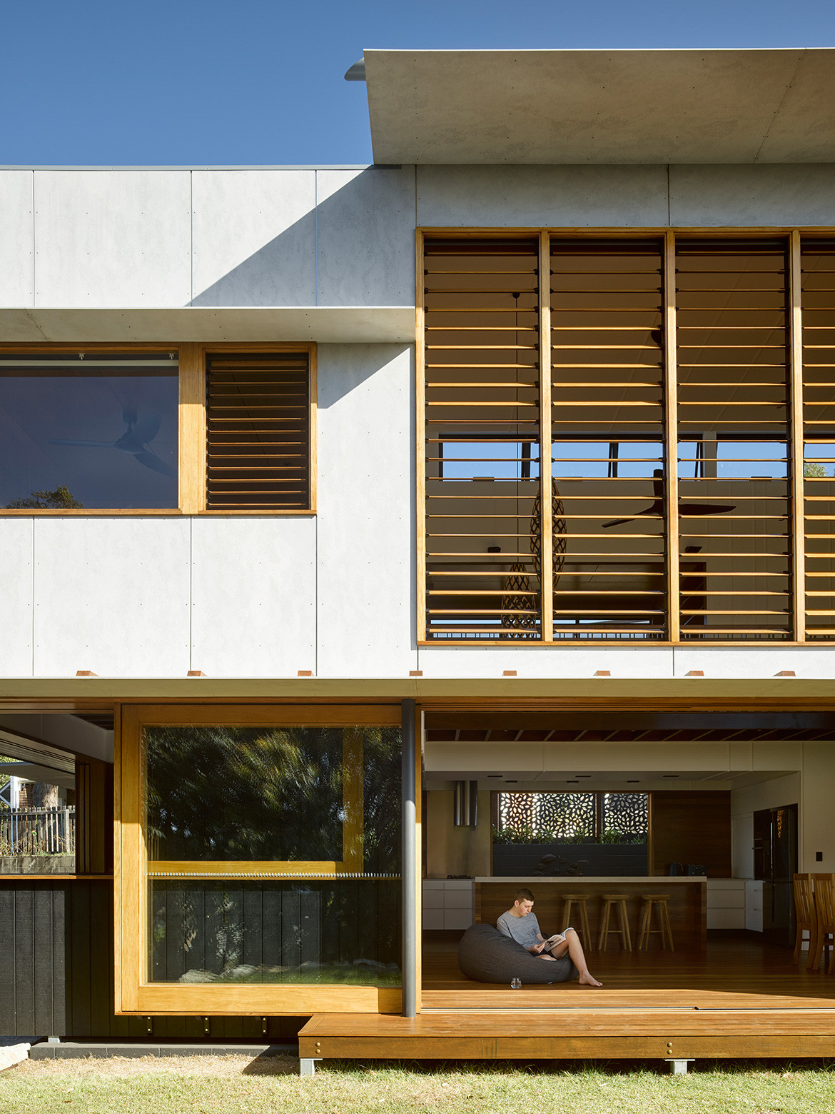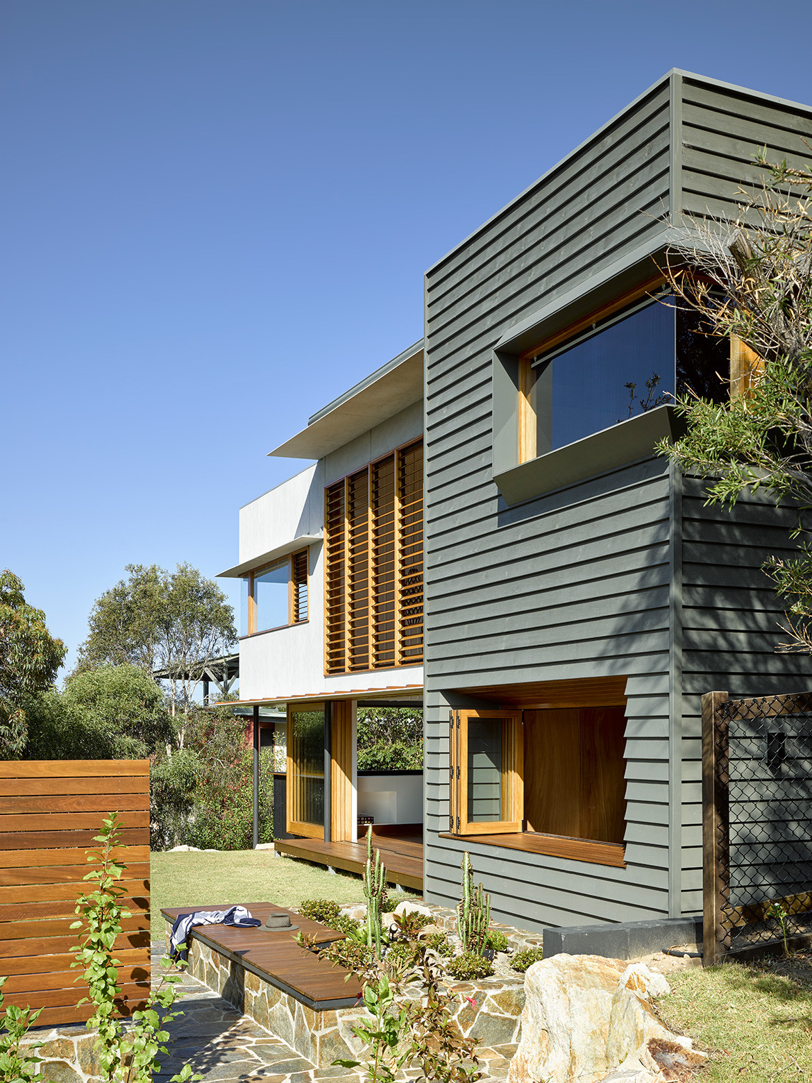 The house is located on a street corner next to council land. The clients’ relatives had planted out this land over time, though the majority was done 35 years ago. Today, it’s quite mature and Paul has incorporated it into the design as a “borrowed landscape” to create the sense of a bush setting.