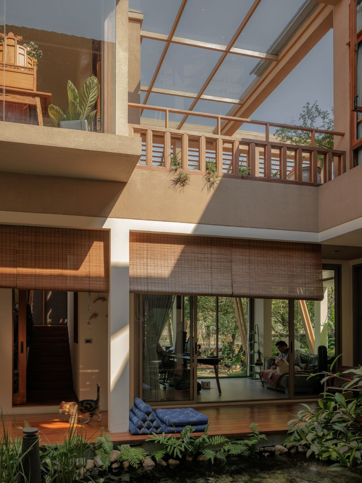 The team at Design in Motion, which included Tharit Tossanaitada, Sasinee Tiengtawat, Warittha Trairattanapong and Watcharapong Wongjak, has indeed balanced a number of programmatic requirements for this residential project. Covering 419 square metres, PN House is home to its two owners as well as five cats and a dog. This lively multi-species set-up sits alongside the changing lifestyles of the owners, so a certain level of adaptability has been crucial to the success of the house.