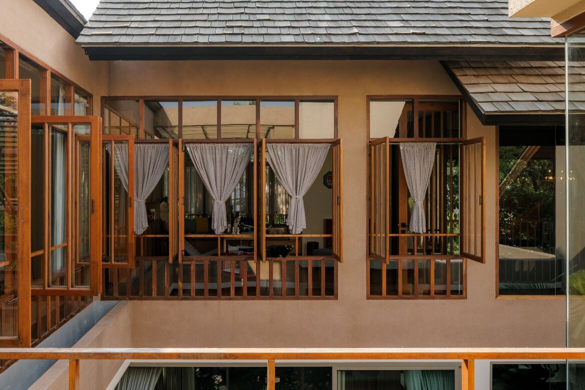 Materially, the functional concerns of the tropical setting carry through to the use of Burmese Teak (the owner’s favourite). The timber is shown off throughout as a key part of the design, while the external walls have been complementarily coated with an earthily toned colour palette. A cedar shingle roof adds the finishing touch.