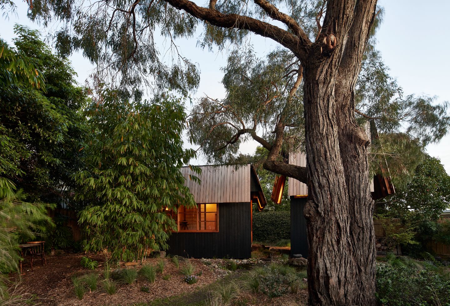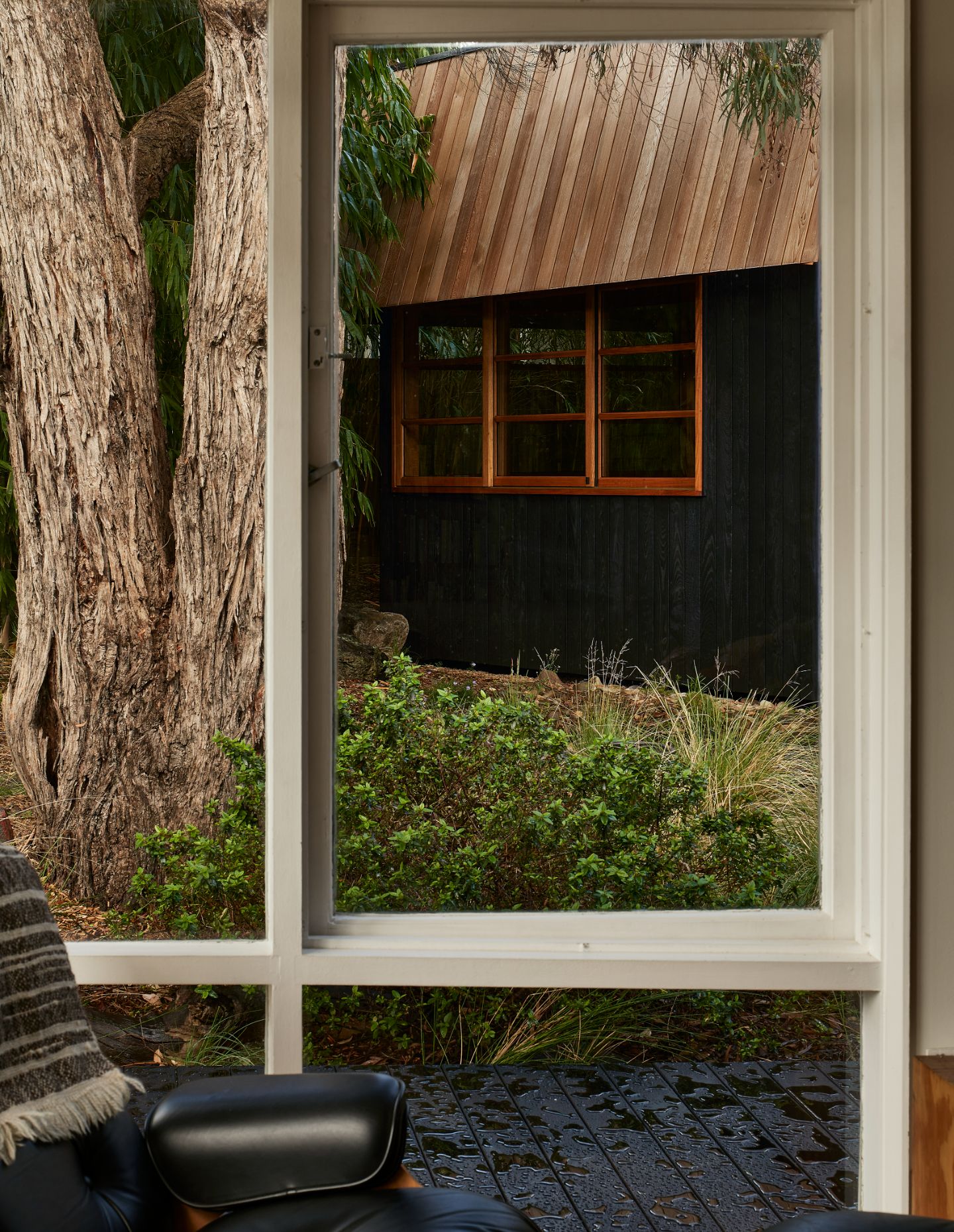 The owner’s parents built the original house in 1964. Inspired by the Australian suburban modernism of Robin Boyd, they unusually positioned the house on the triangular site facing north, with its back to the street –– they then planted the garden with native trees after Edna Walling.