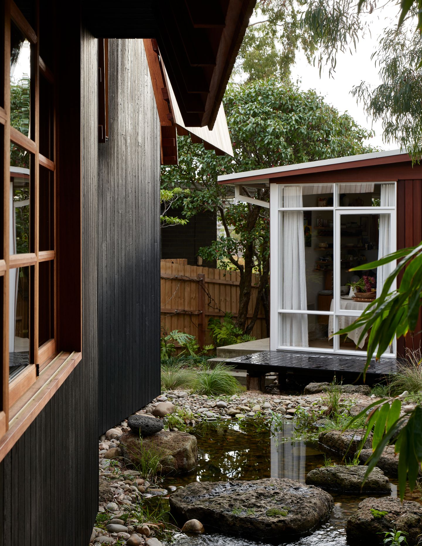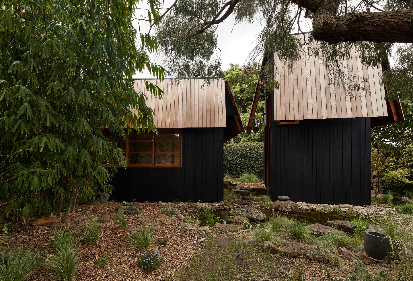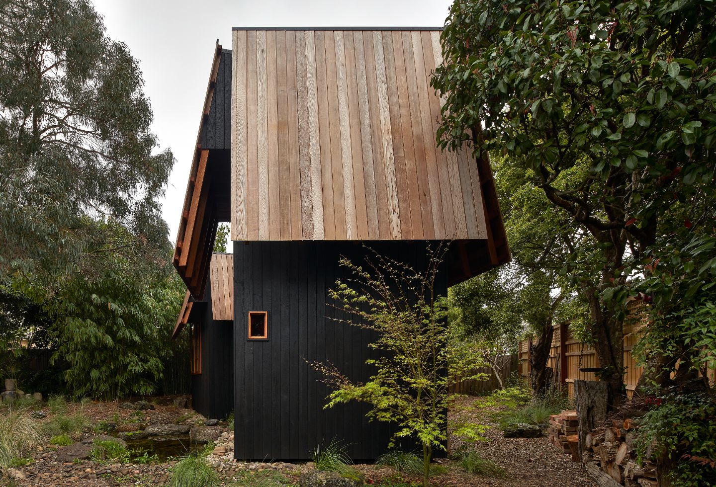 An important decision was to find a source of Shou Sugi Ban in Australia that had the same qualities as the traditional Japanese material. Cedar on the fins creates an important connection to the main house, which is clad in vertical Californian Redwood.