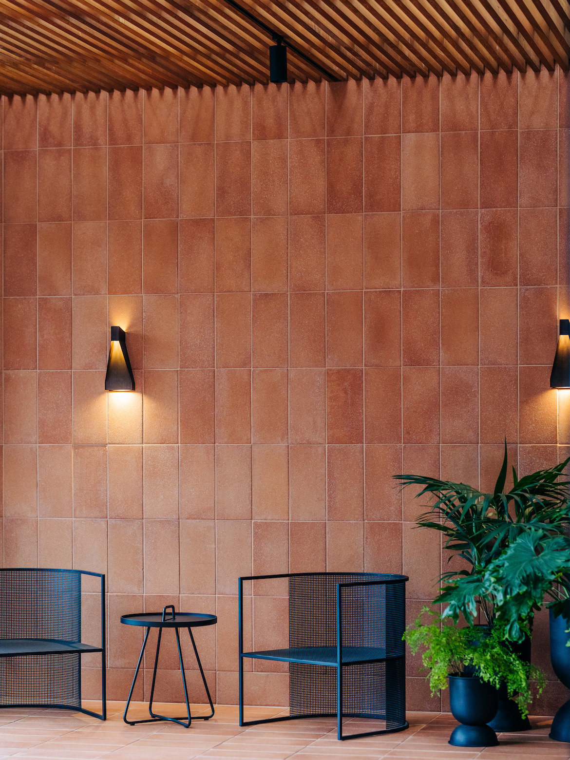 The winter garden also creates a ‘veil’ between the couple’s living area on one side and the main bedroom on the other. However, Haddad was mindful to ensure walls didn’t restrict the views – hence there’s an open steel balustrade and large picture windows connecting the neighbourhood and views beyond.