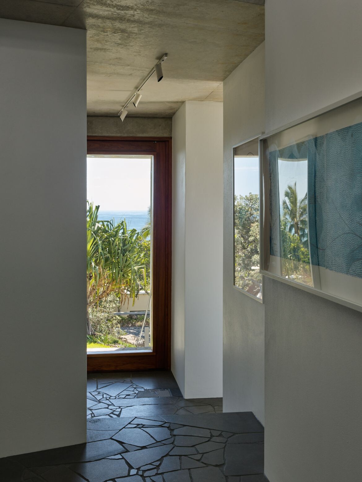 The new house has taken shape in the context of four key parameters. First, to function as a private residence and a genuine home. Second, to accommodate less permanent occupants such as wider family in its use as a holiday home. Third, to provide a gallery-like space for art. Fourth, to sit within the local environment, maximising ocean views and minimising the need for air conditioning.
