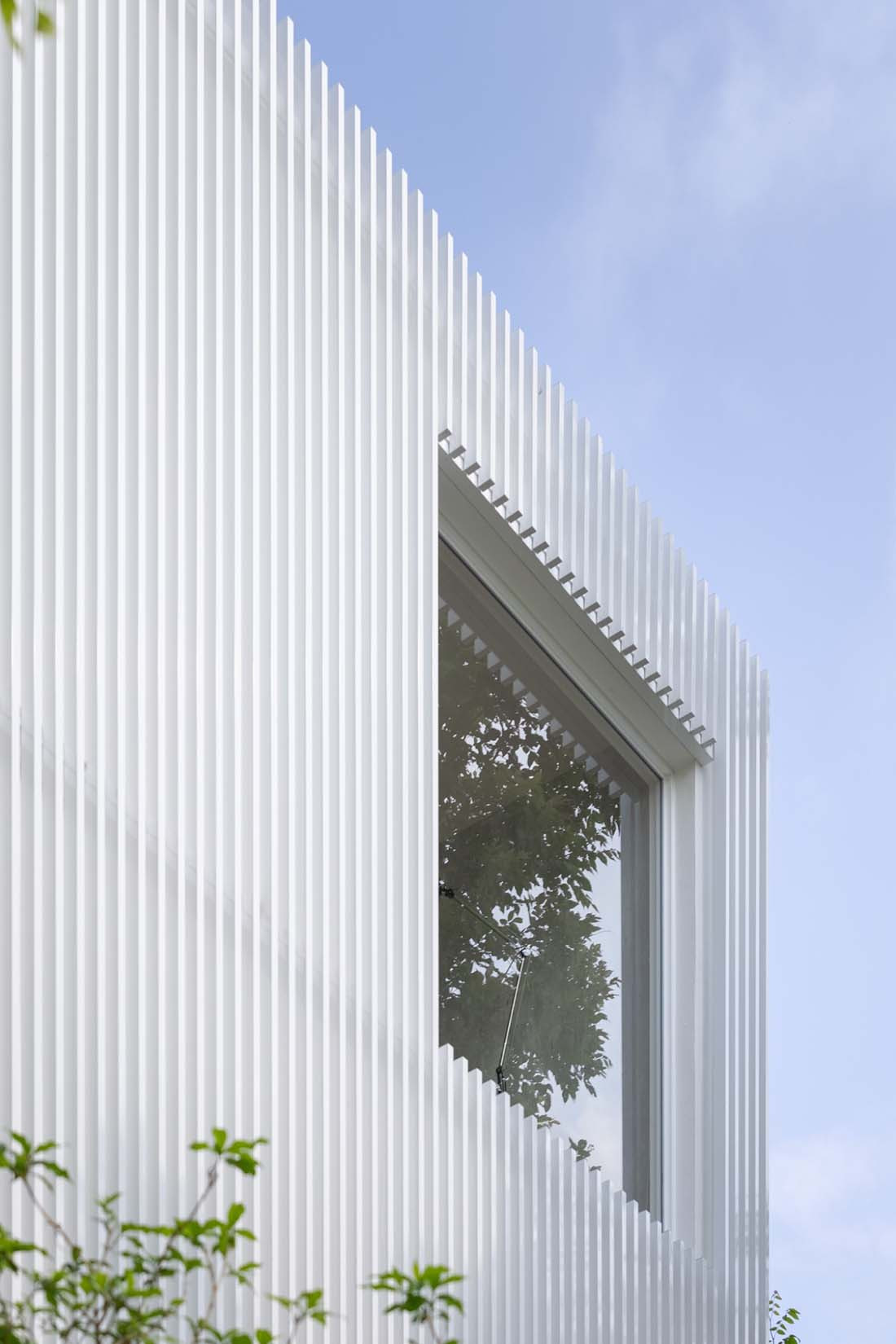 The trellis was chosen for several reasons: firstly the design allows natural light into the interiors, while still offering a sense of privacy. Secondly, the material itself is low maintenance, lightweight and durable.