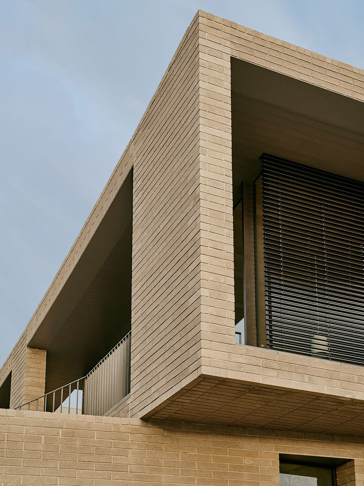 A curved wall on the south side follows the contours of the hill while the north wall sits back from a masonry colonnade that protects the openings, but also benefits the thermal regulation of the house. In summer the colonnade keeps the sun out, but in winter the low angle sun gets through to warm up the concrete slab. The lower level wall folds back to once again follow the site’s contours. A cantilevered masonry soffit protects the lower ground floor, which wraps back into the site.