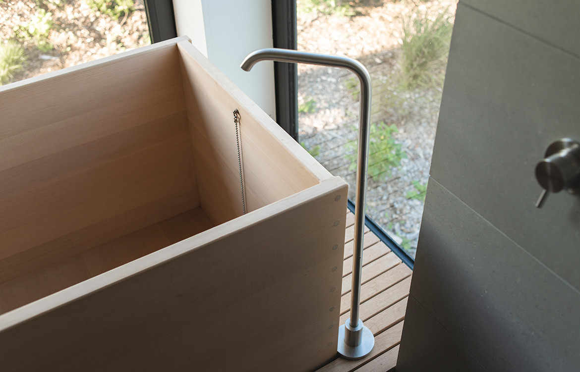 Designed by Andrew Simpson of Wiredog Architecture, the client brief was for a Japanese-inspired home. “One of the clients works from Tokyo two weeks out of four, so the couple has a real love for Japanese craft and modernism,” says Andrew. “They are both passionate about design and understand how finely tuned this style of building is. It needed to have a conceptual story to anchor it and avoid imitation, and it required a high level of craft on site by the builder, Matt Evans.”