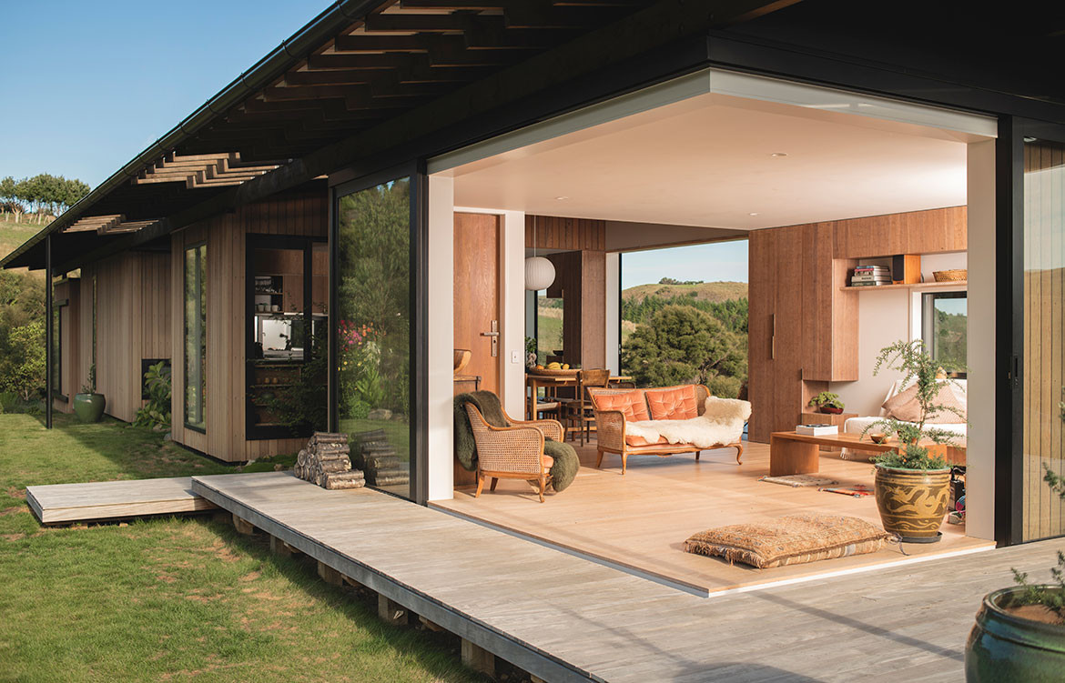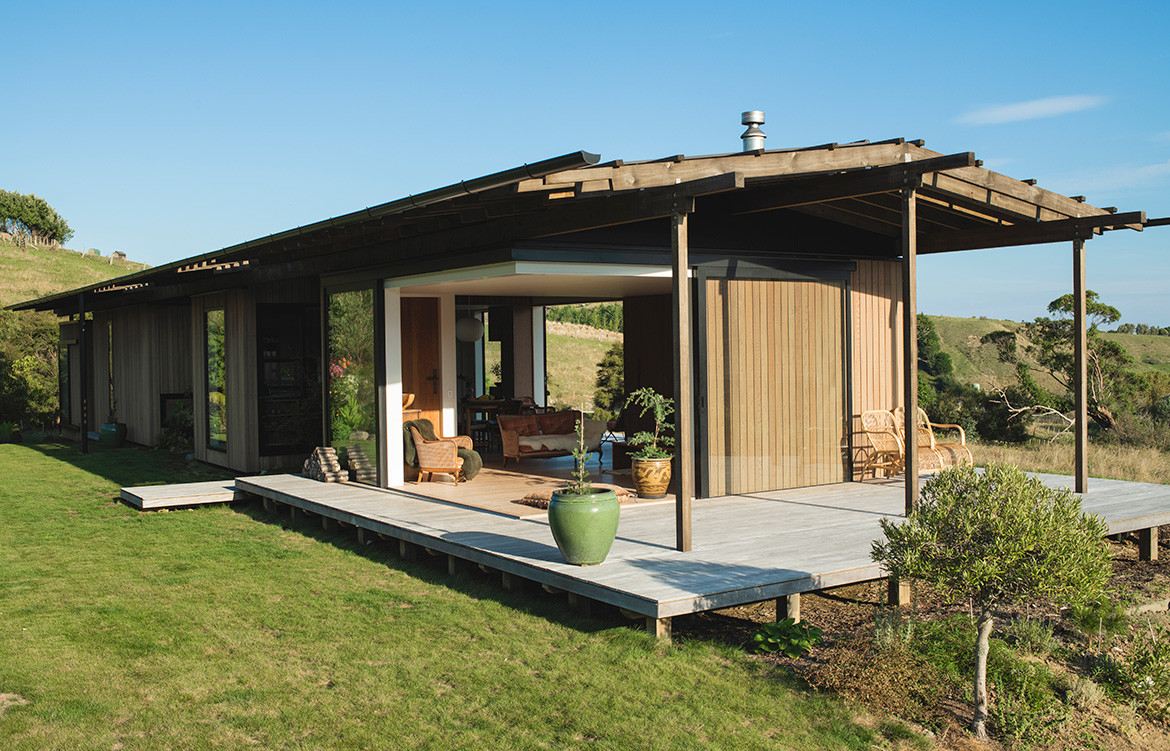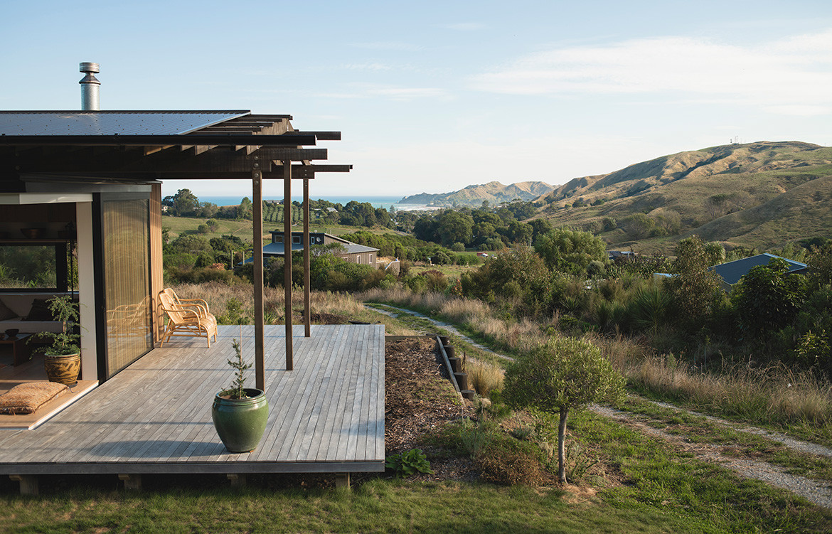 Named after the Maori word for ‘feather’, the Huru House reflects the owners’ desire for a lightweight house both in scale and environmental footprint. Set in the rural foothills above the small east coast city of Gisborne, this is a beautifully subtle building; a family retreat with rural views and glimpses of the Pacific Ocean.