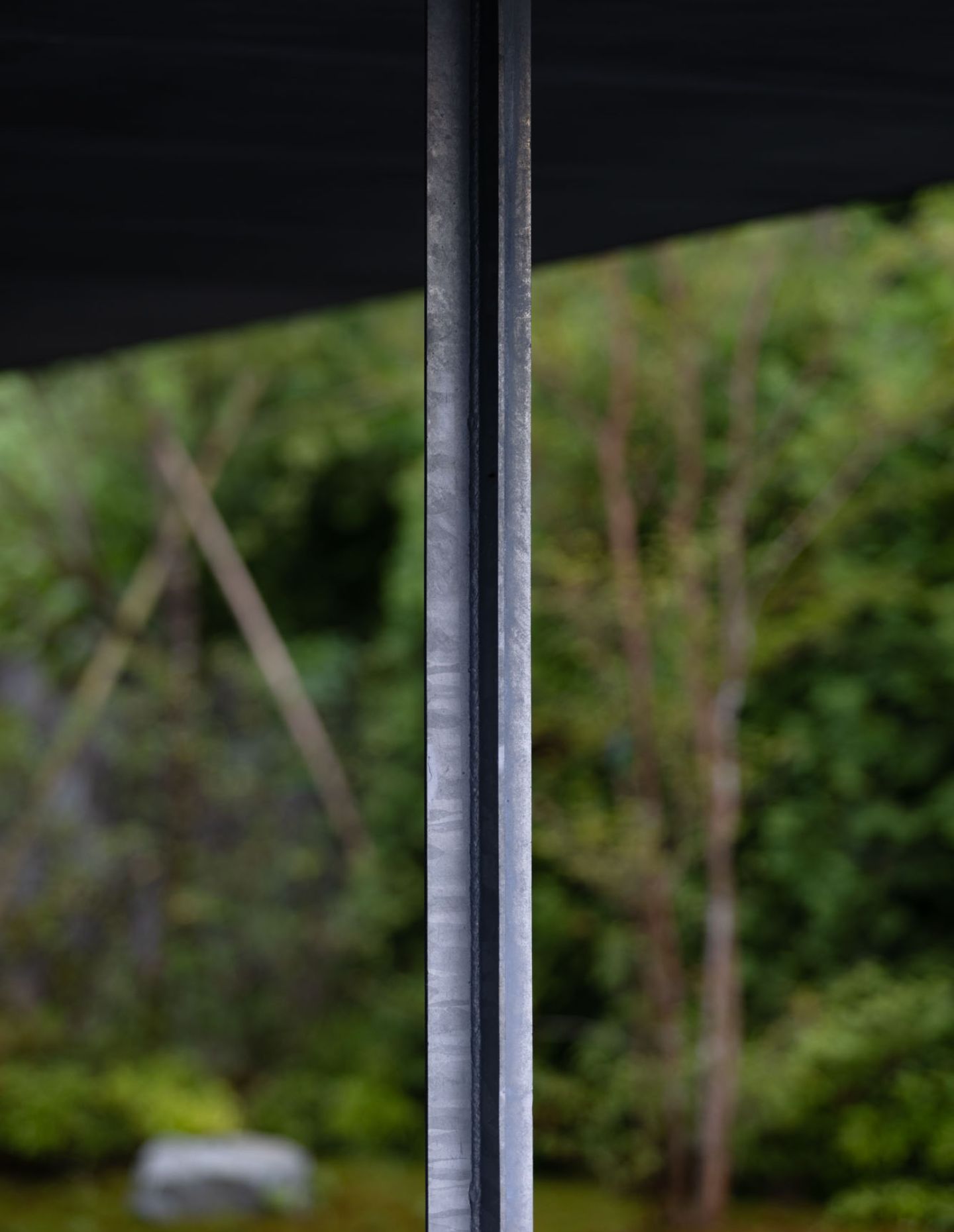 This unobstructed linearity was achieved by changing the eave heights atypical to the firm’s style. “KKAA’s basic rule for eaves is to give rhythm to the eaves by exposing the rafter-like joists that support them,” adds Kuma. “In this case, the hanging wall above the opening was eliminated to maximise transparency, and the eaves were applied flat for the first time. In a sense, the glass circling above the flat surface is a modernist expression, and a new attempt was made to combine it with the sloping roof.”