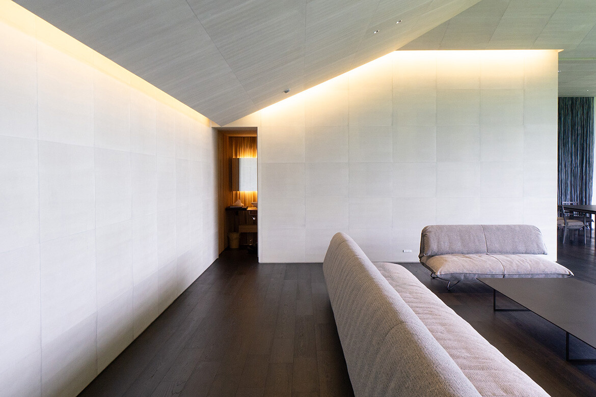 Kuma describes the rice paper as “the protagonist of my house and the softness of rice paper, the texture of rice paper, as sometimes translucent paper is the basis of my experience. I want to translate that kind of style into the contemporary way, but still the essence of the house is a traditional one storey. [It is] a humble house… the silhouette is very low and almost touching to the ground, and the horizontality of the eaves is most important for the silhouette and the design.”
