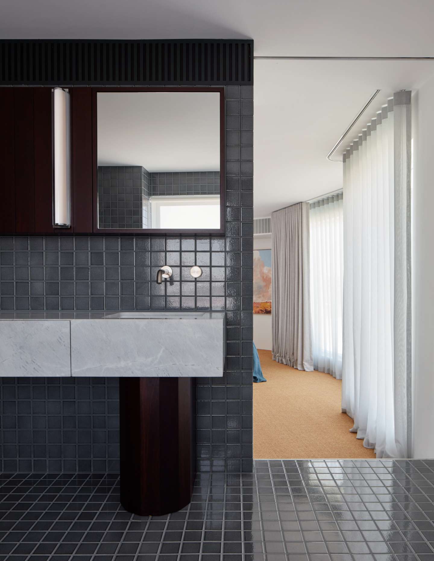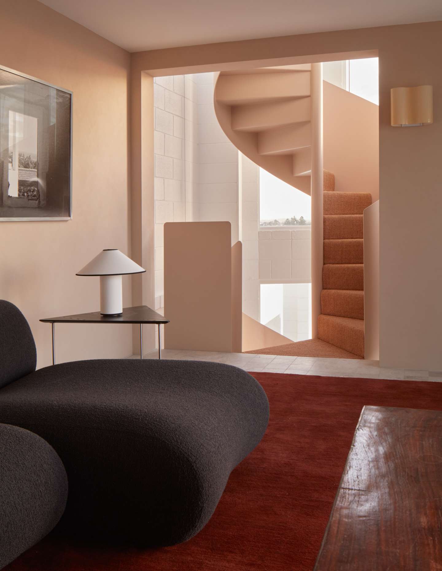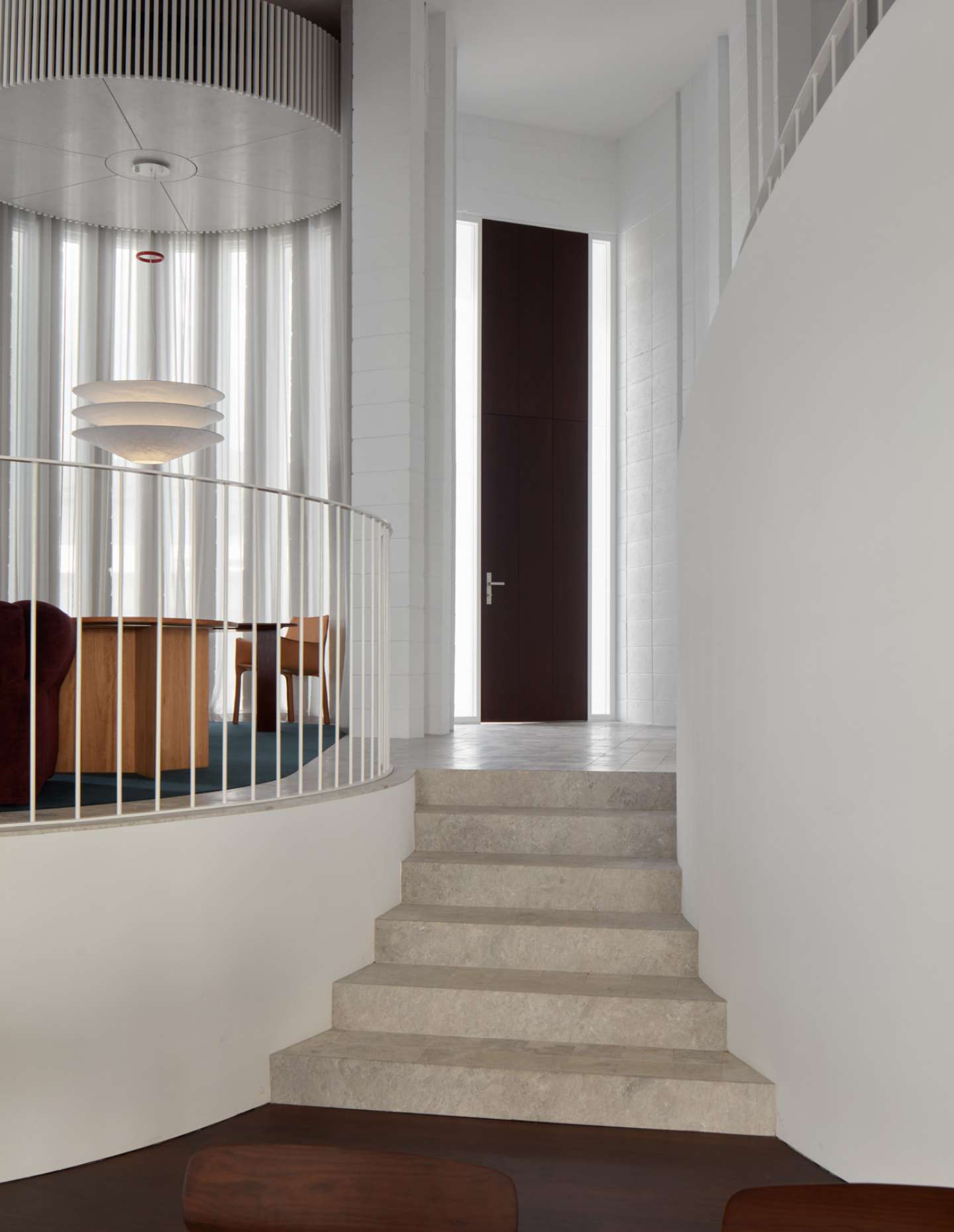 The restoration pays homage to Iwanoff’s style by selecting finishes, fittings, joinery, and details that are sympathetic to his original design. The new internal spaces resist competing with the flamboyant exterior built form; instead, they play a complementary and respectful counter role of mediation. The garden design allows for more freedom, featuring cylindrical forms and predominantly endemic Western Australian and Mediterranean plants, creating a landscape that is rooted in its location.