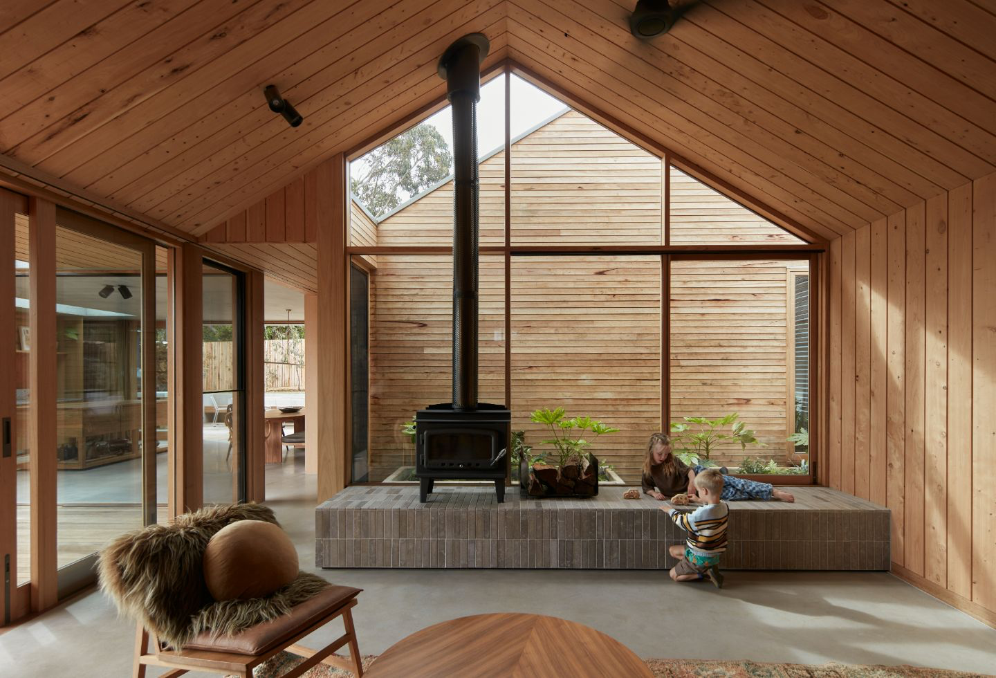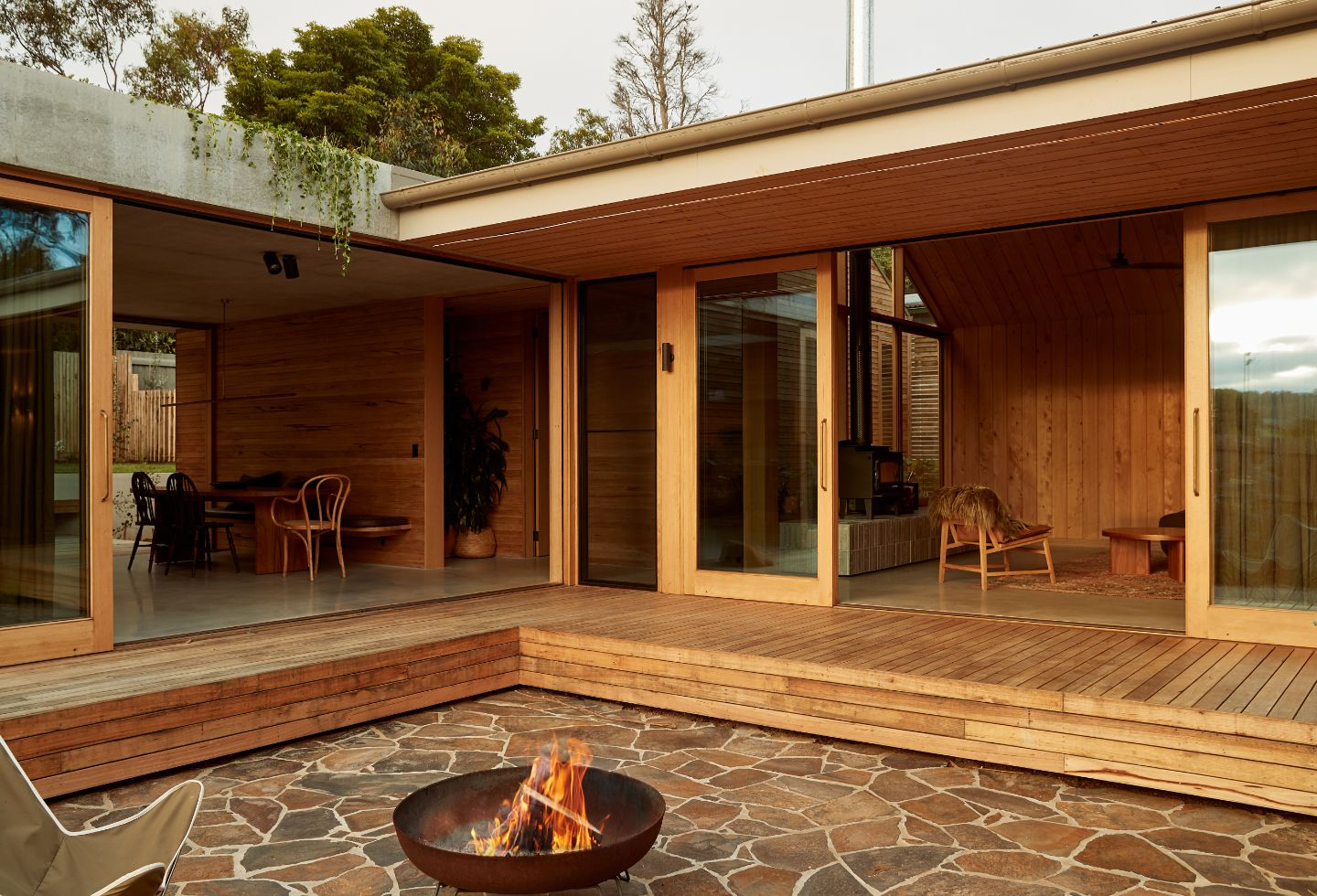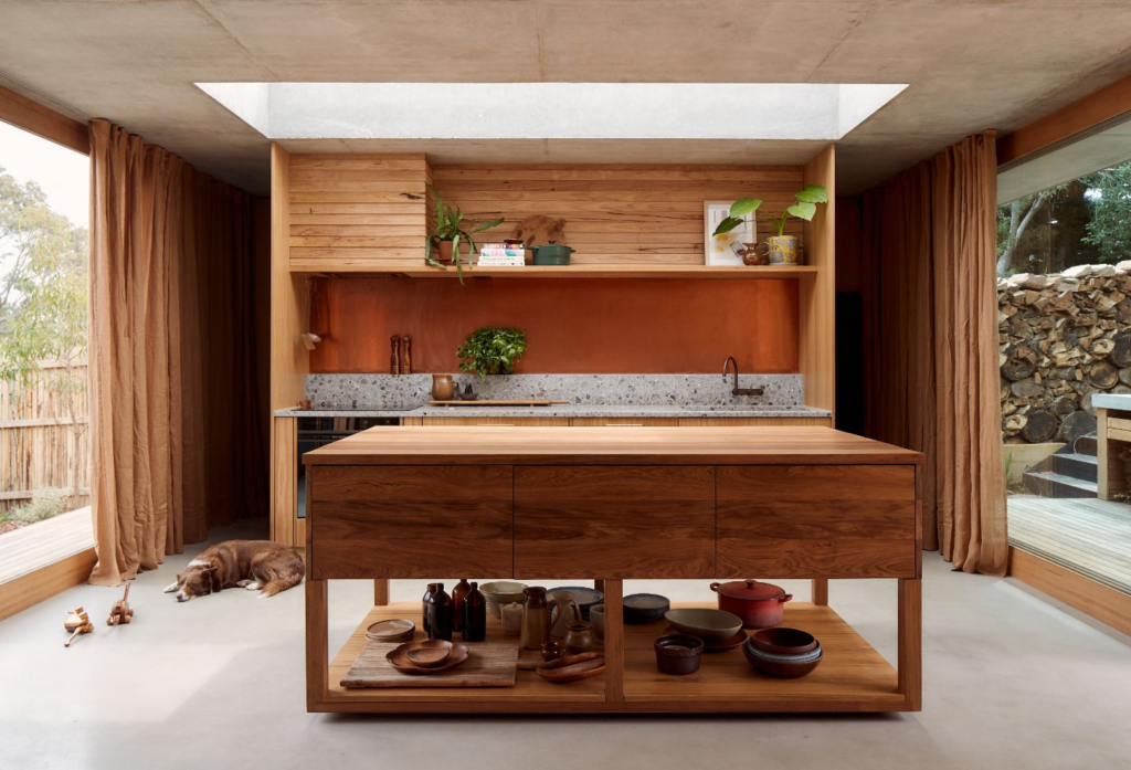 “I’m not really a typical architect when it comes to hobbies,” says Michael when asked about his sources of inspiration. “I love spearfishing, hunting and so on – I’m a really outdoorsy person. A lot of what influences my work comes from growing up exploring our beautiful High Country, [with its] remote cattlemen’s huts. That’s where a lot of the forms for my buildings come from – I just love the ruggedness and resourcefulness of the construction of those buildings.”
