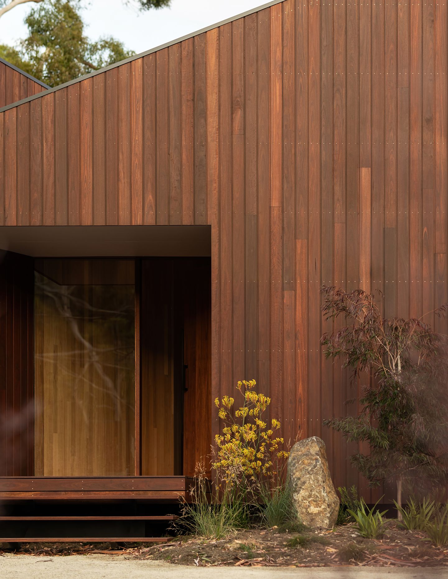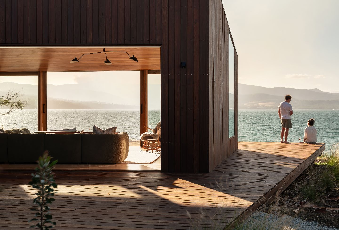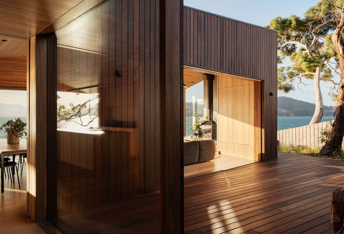 In Tasmania, where external conditions can change in a minute, an angular composition maximises opportunities for both time outside and light through the beachside home. The courtyard is protected from the westerly wind, and even inside at the dining table, the family feel immersed in the outside.