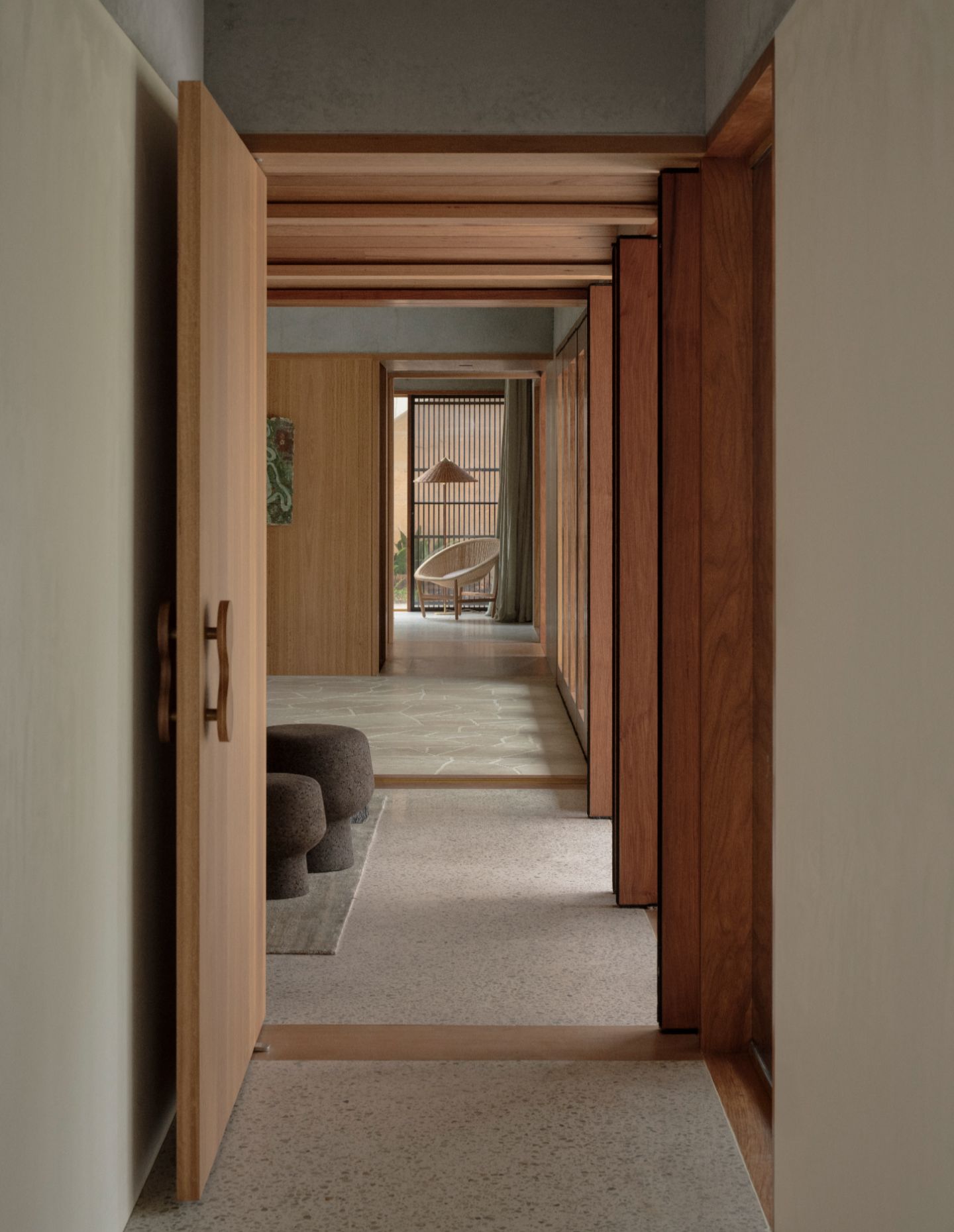 This inward-facing character – modest from the outside, luxurious within – is one clue into some of Parsons’ sources of inspiration. It’s an expression of privacy that immediately evokes something of old, dense urban areas in West Asia, and the architect references an ancient walled garden ideal. Indeed, this is a project rich in wide-ranging cultural references, as well as direct architectural precedents such as Jørn Utzon’s Can Lis in Mallorca.