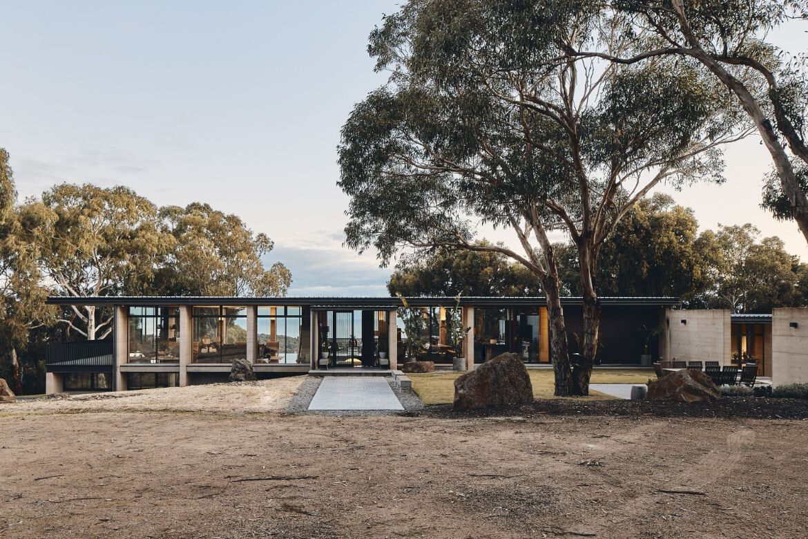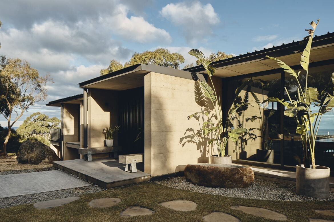 Bedding into the landscape with solidity through the rammed-earth walls, the Aireys House communicates a visual language akin to historic ruins. This construction style not only accentuates the raw aesthetics of the house but also bolsters the impression that the dwelling has organically surfaced from the land.