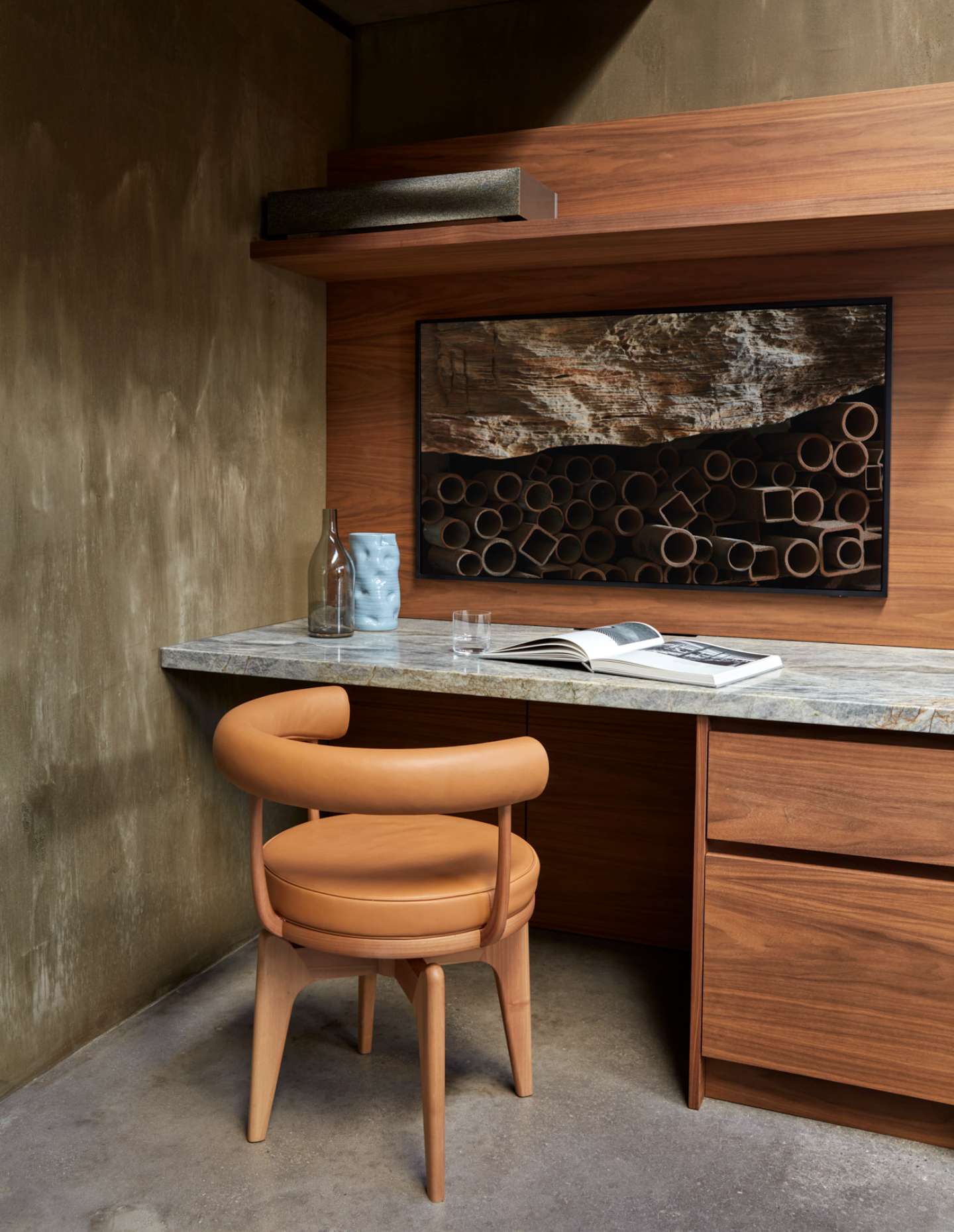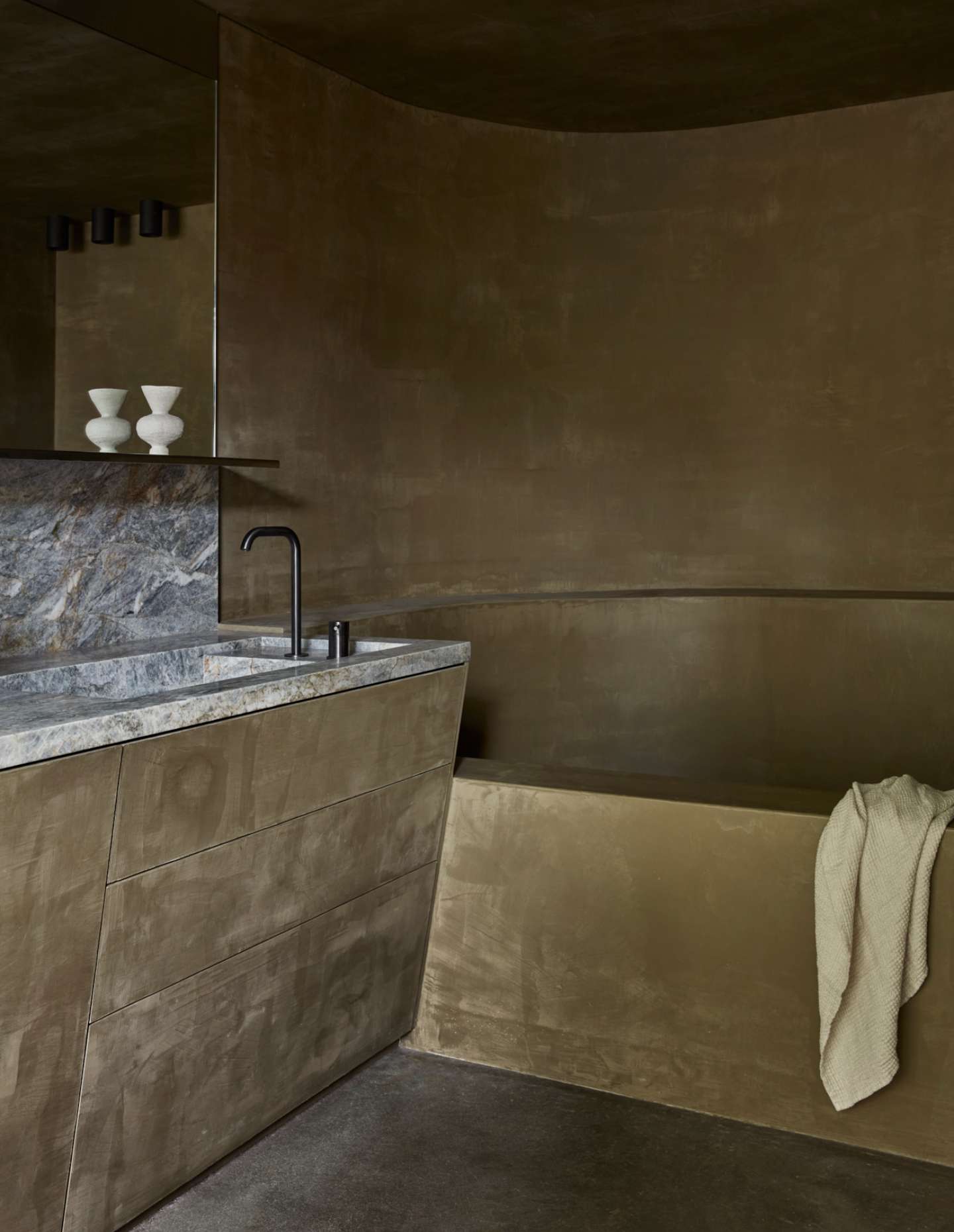 Set within Perth’s inner-city suburb of Subiaco, Proclamation House is an abstract reinterpretation of the area’s archetypal character homes. The building is characterised by a singular use of olive-toned render, obscuring boundaries between the landscape, exterior and interior to craft a feeling of unexpected immersion.