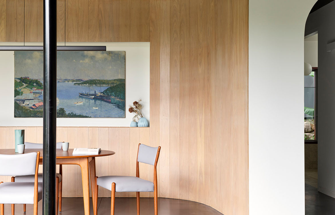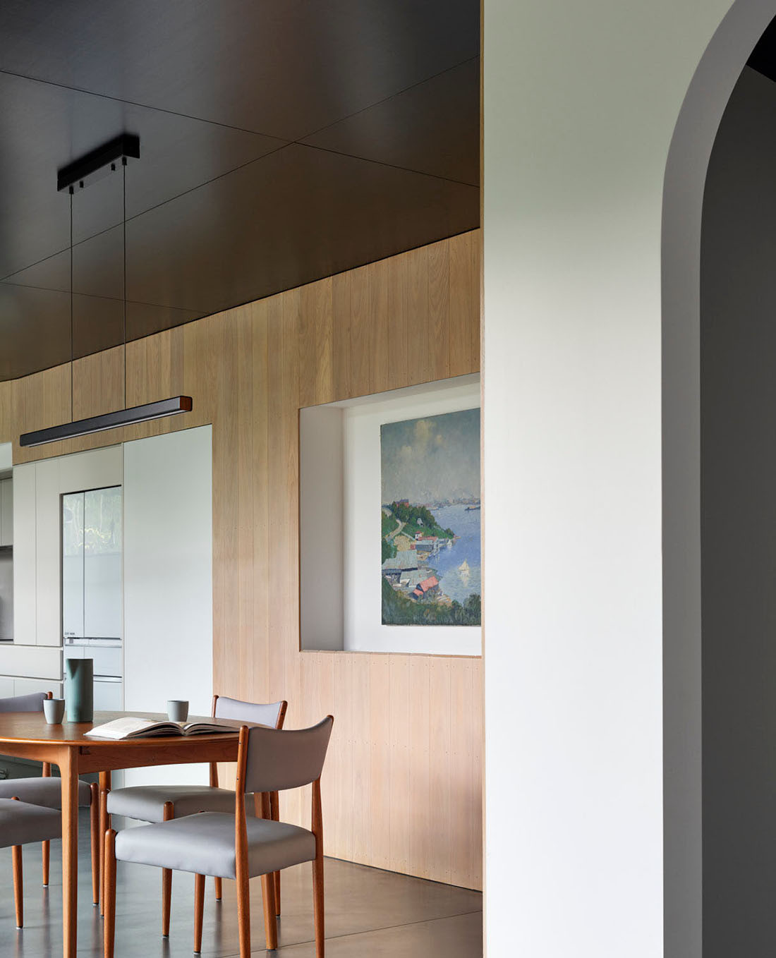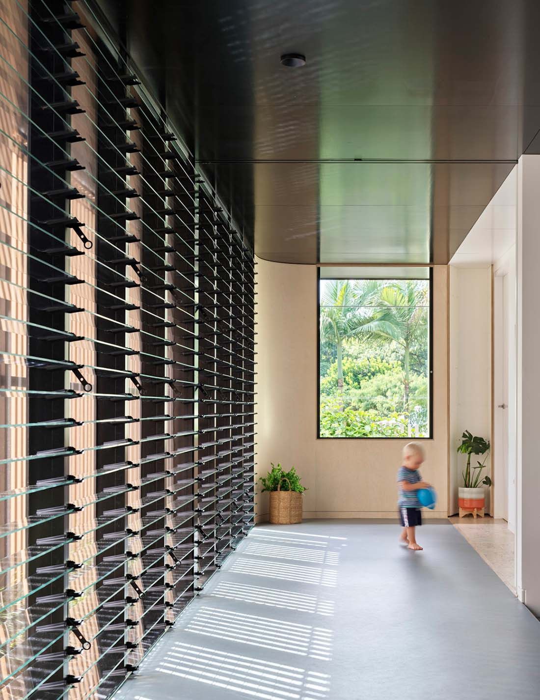 With a soft black finish, the material absorbs the harsh light that dominates the Queensland sky, diffusing it back throughout the interior to produce a gentle ambience. “The black ceiling adds a sense of calm to our home. It’s a bit like being under canopy shade, which in our bright climate makes much more sense than the intense reflectiveness of all-white spaces,” muses Derrick.