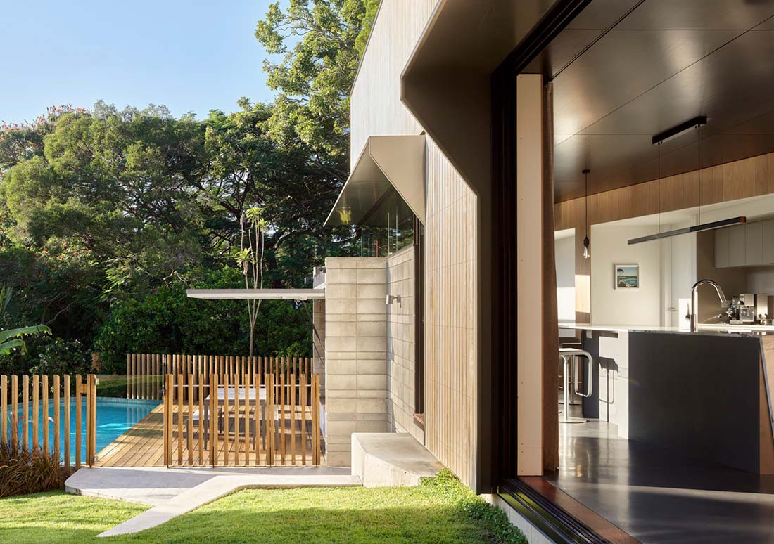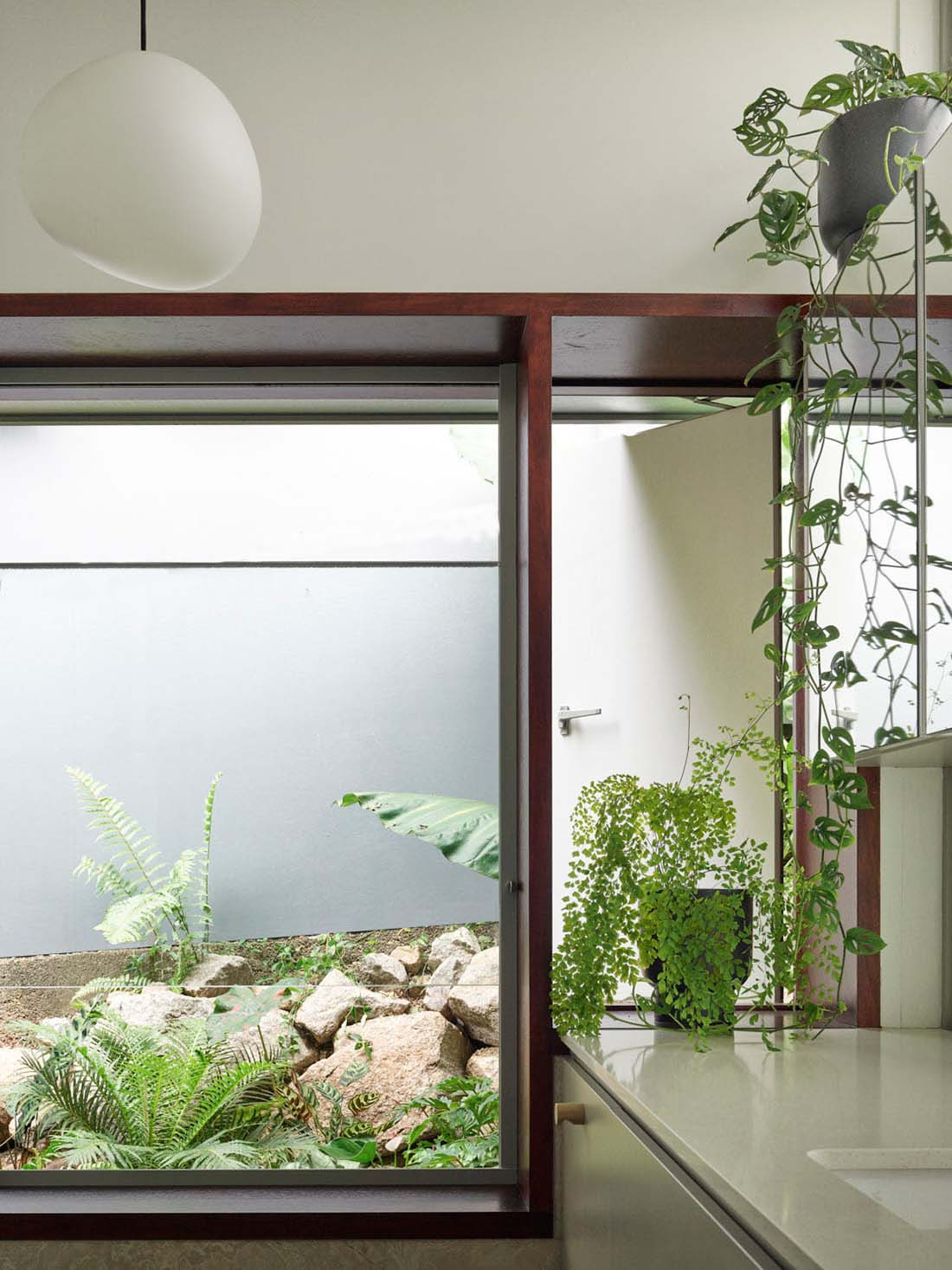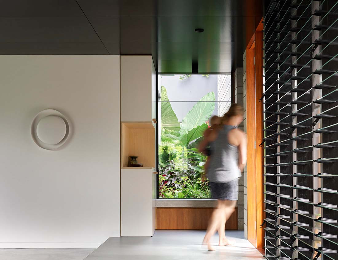 Drawn to the site because of the lush foliage at the bottom of the property, the home has been oriented to capture the verdant landscape, which creates the sense of a tropical escape in a dense urban setting. It was a task that Derrick worked into the planning to ensure “we got the views back to those beautiful leafy areas as soon as you walk through the front door of the house”.