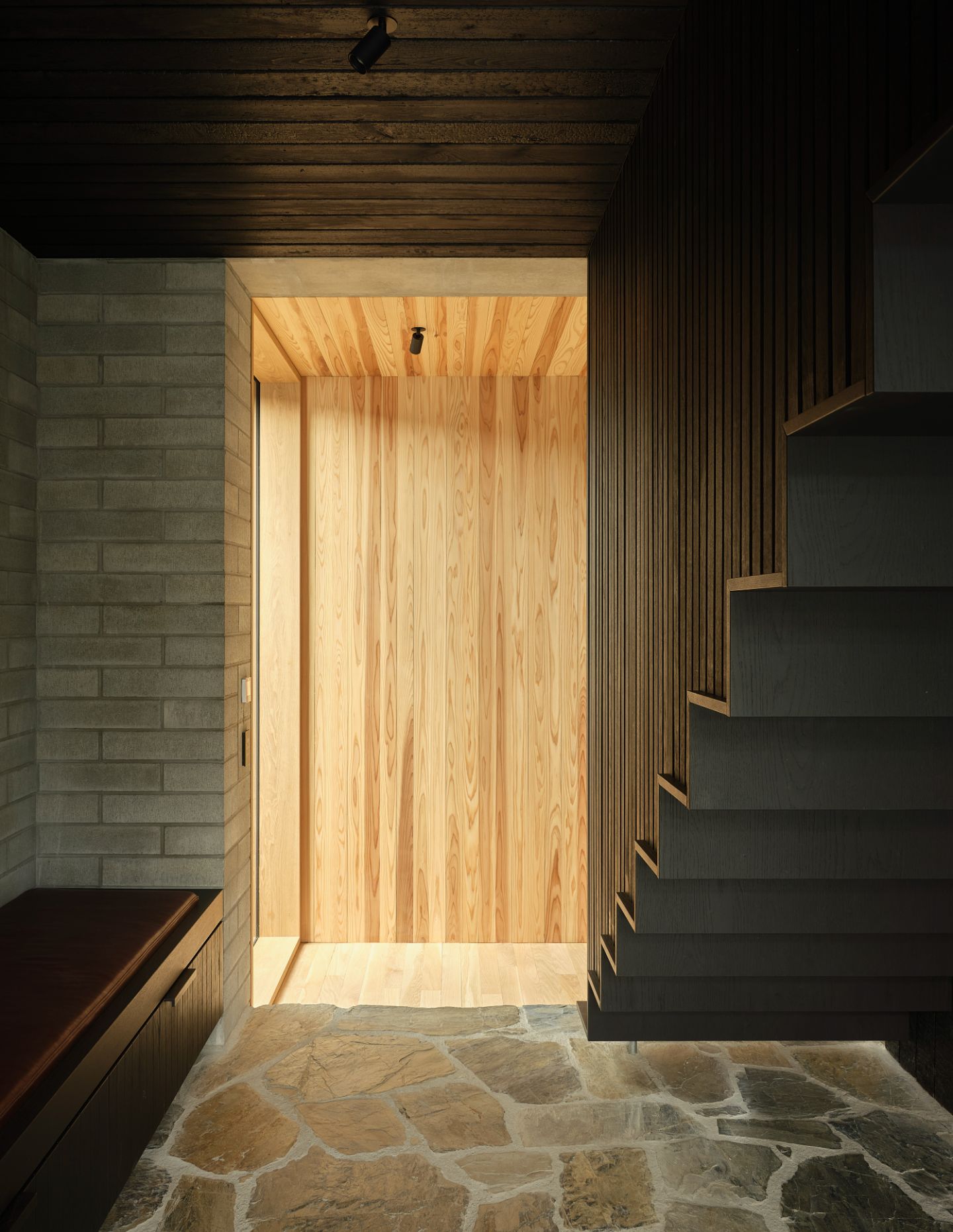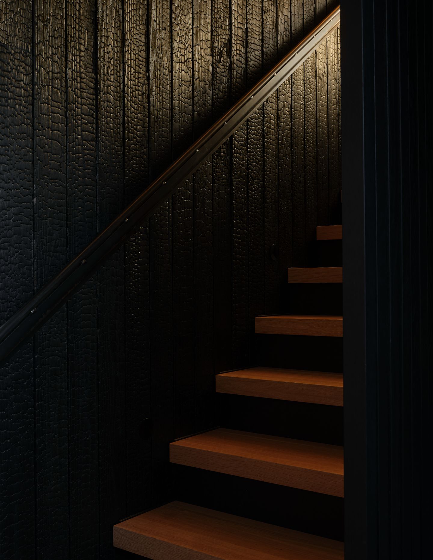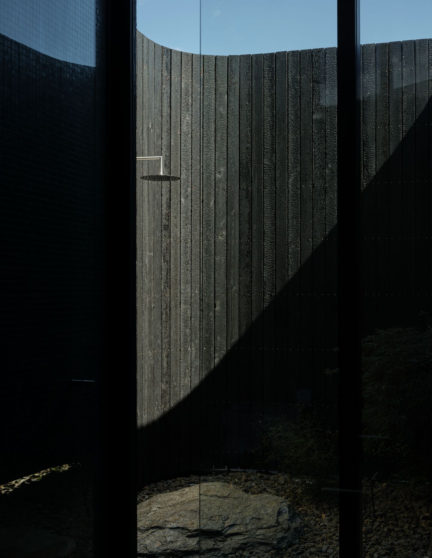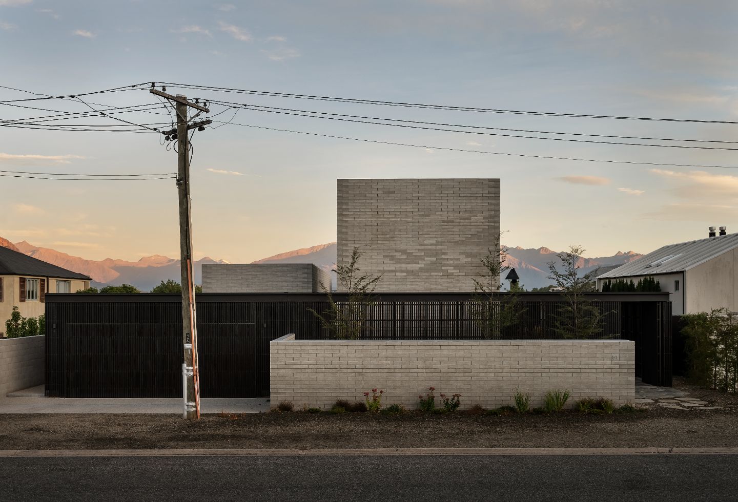 Orientated towards Lake Wānaka and Buchanan Mountain peaks, the street-facing ebonised façade – an abated interpretation of Brutalism – alludes to what lies beyond the walls. The residence presents itself as a series of solid volumes arranged according to the relationship between openness and enclosure. These forms are enveloped by a lightweight screen system, courtyards and selective openings that create an interplay of light and shadow within. To the streetscape, the form is untainted without windows punctuating the façade, empowering the view over the lake while providing utter privacy.