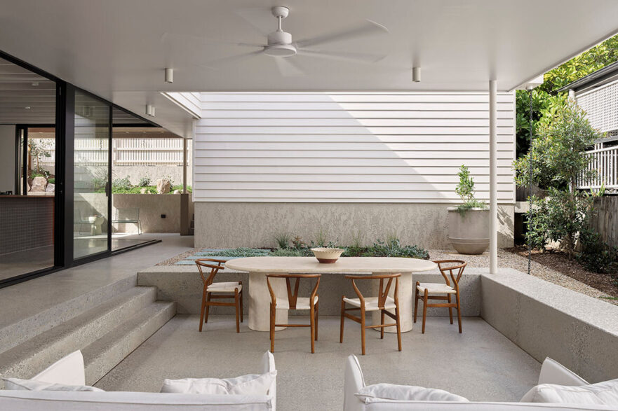 Another layer of complexity came in the architectural character of the suburb, which demanded that the house respond to the Queenslander vernacular. Maytree Studios was acutely aware of finding a solution that would blend seamlessly with the timber and tin weatherboard buildings of the neighbourhood.