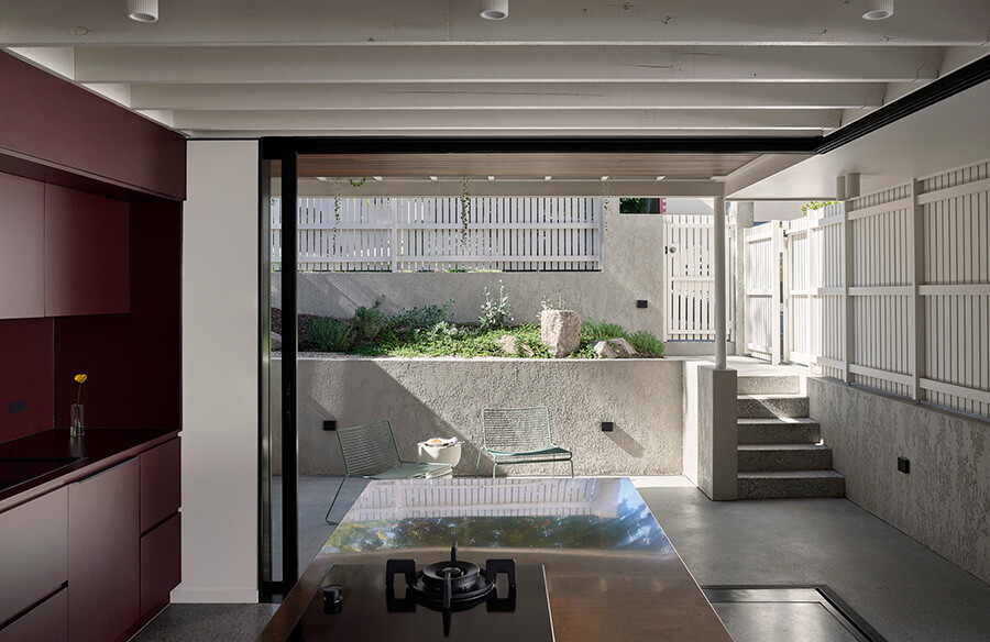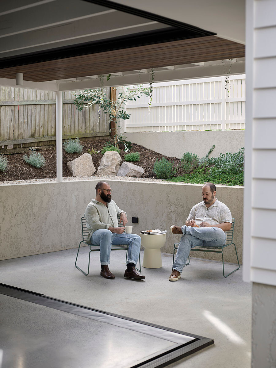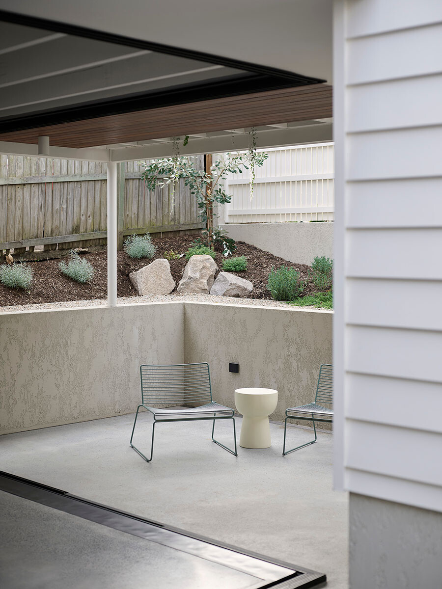 A key part of the brief was to “live in the garden”. As a south-facing block, the home needed a clever design solution to maximise as much natural light as possible, it also meant keeping the floor area to a modest volume. A big lightwell void was introduced, to bring in strong daytime light and warmth during winter, while an east-facing morning coffee spot offers cool respite during the summer afternoons.