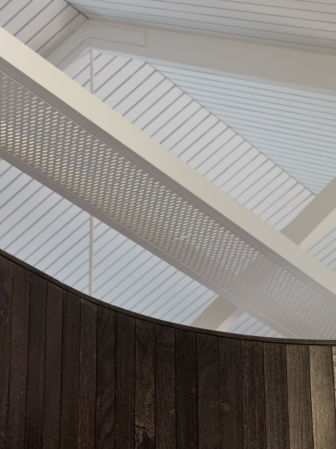 The insertion is conceived as a separate intervention. “We created a new, external skin inside the envelope which allowed us to get lots of natural light and air deep into the plan,” says Walker. It also meant that, programmatically, four bedrooms and a rumpus could be achieved without having to stick to the location of existing windows to get light and ventilation through.