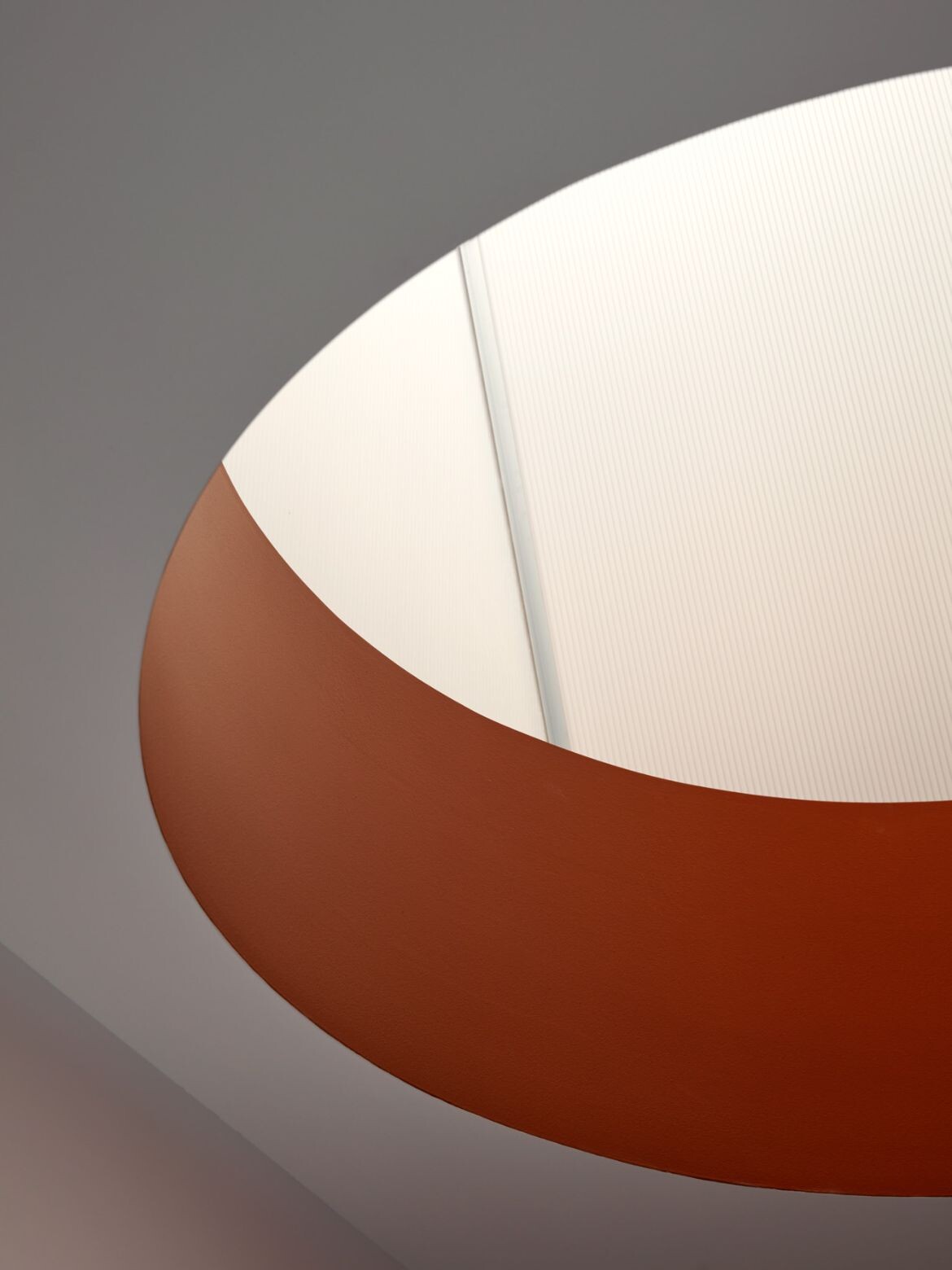 The circle motif adds an organic flow, which sits in opposition to the rationalist approach to the mezzanine. Yet it works because the upper level recedes into the vastness of the whole and is intended to be read in this manner, which Walker confirms: “The main floor is very open and flexible, but upstairs is quite orderly.”