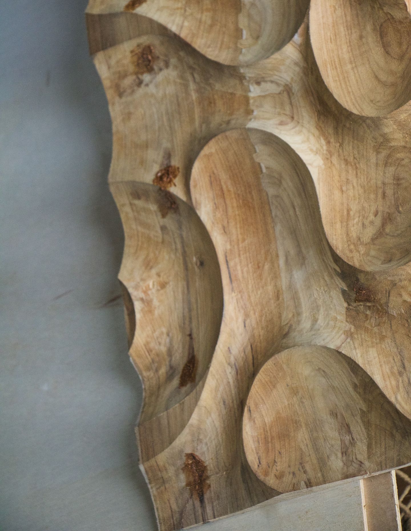 TheEND is expanding its material vocabulary. A new collaboration with an artist using recycled teak explores sustainability through treatment processes and traditional technique. Future releases will investigate how two natural materials create harmony when brought together. “When we launched, we really focused on teak and aged teak, celebrating it in its purest form,” Maroun says. “In the new year, we’ll be exploring how artists merge materials together and the story that creates.”