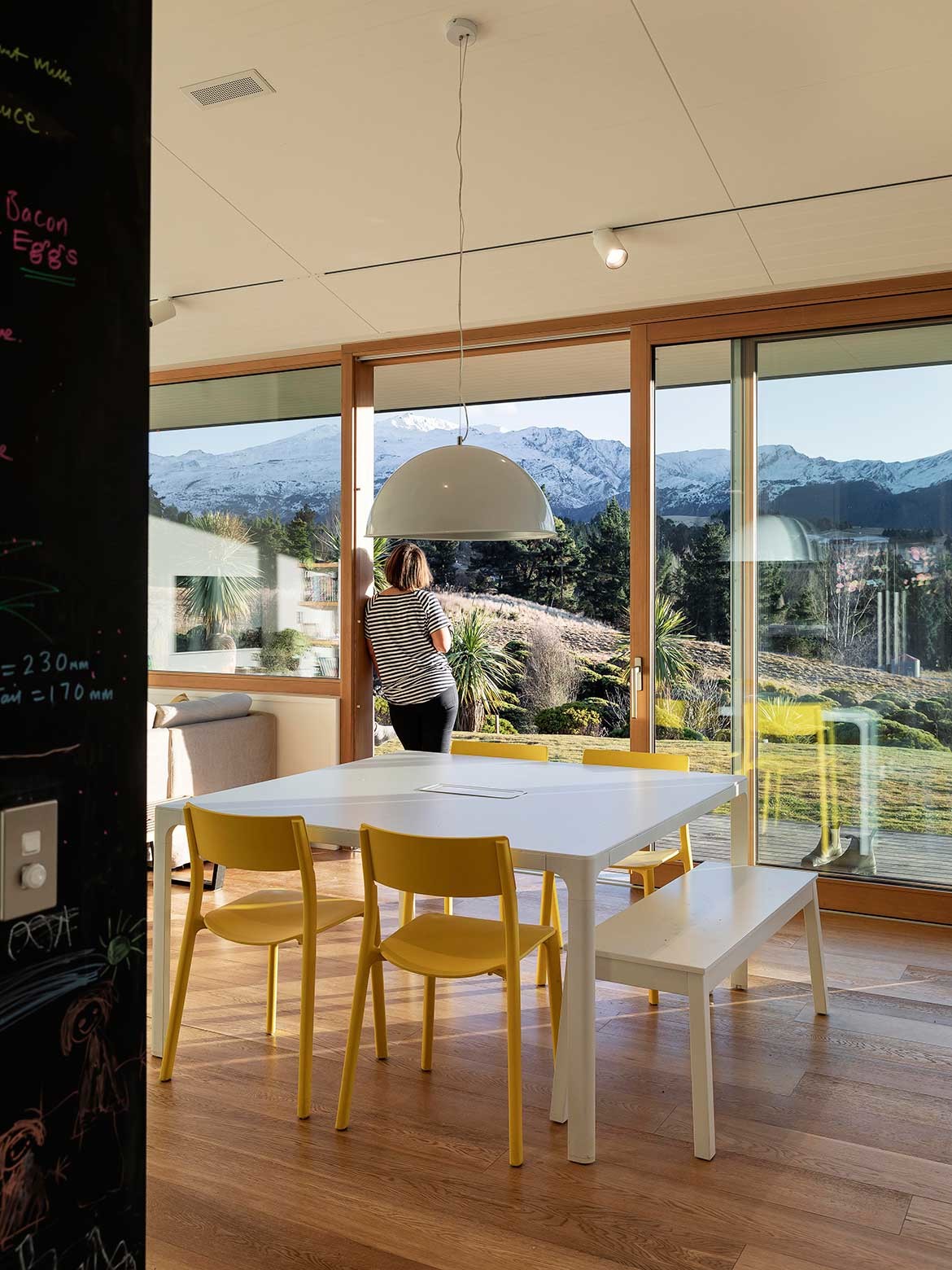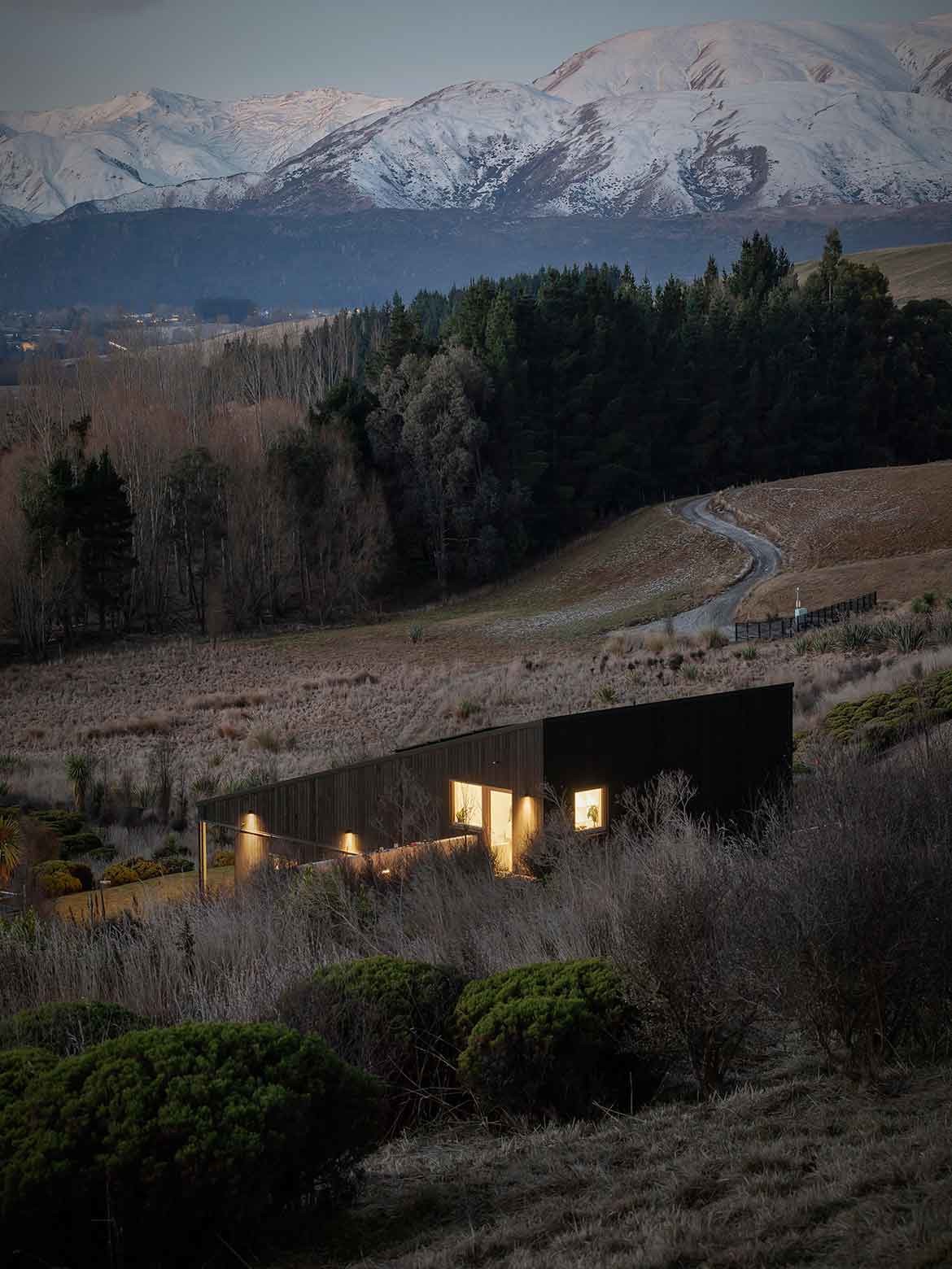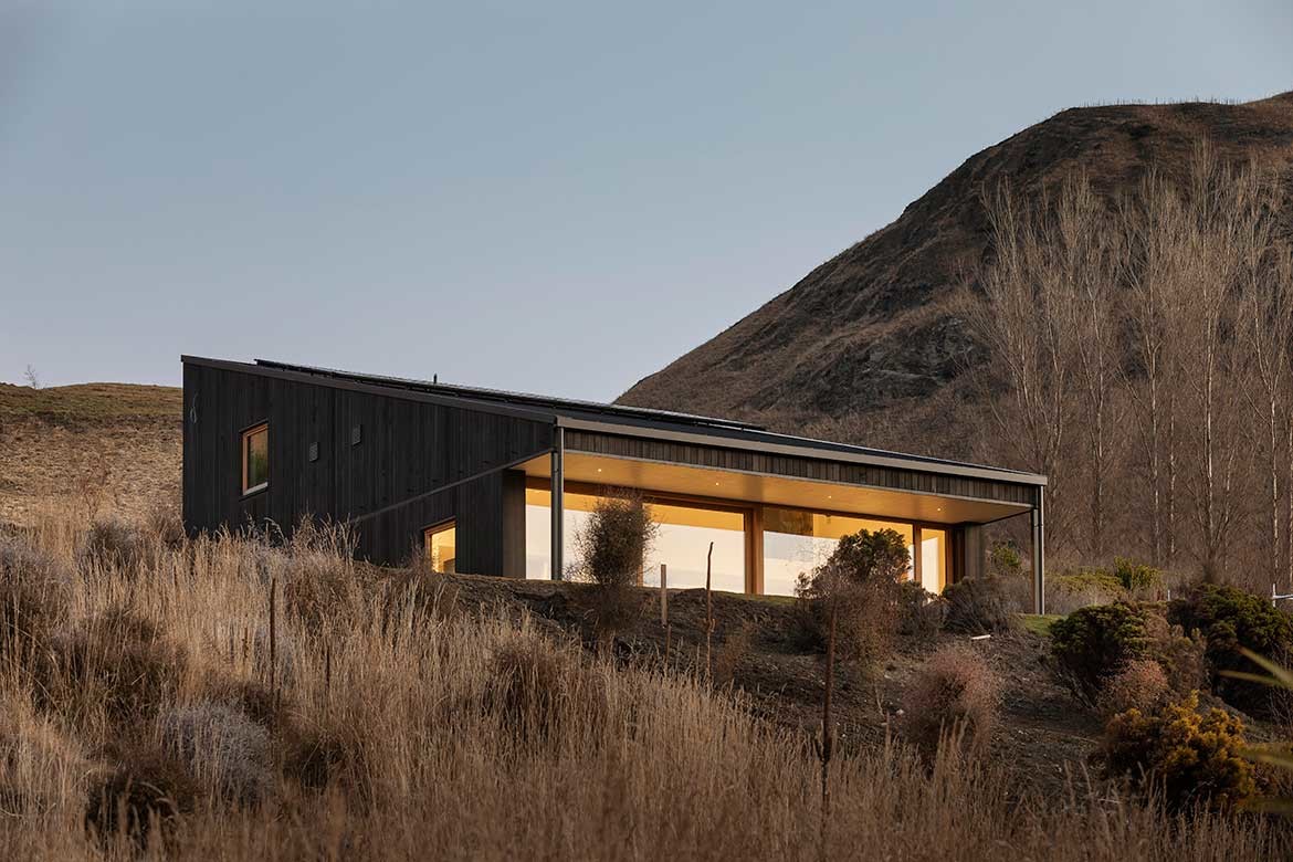 The site’s orientation near Lake Hayes in Central Otago meant that facing the house due north for sun would also capture horizon views of the Crown Range and Coronet Peak.