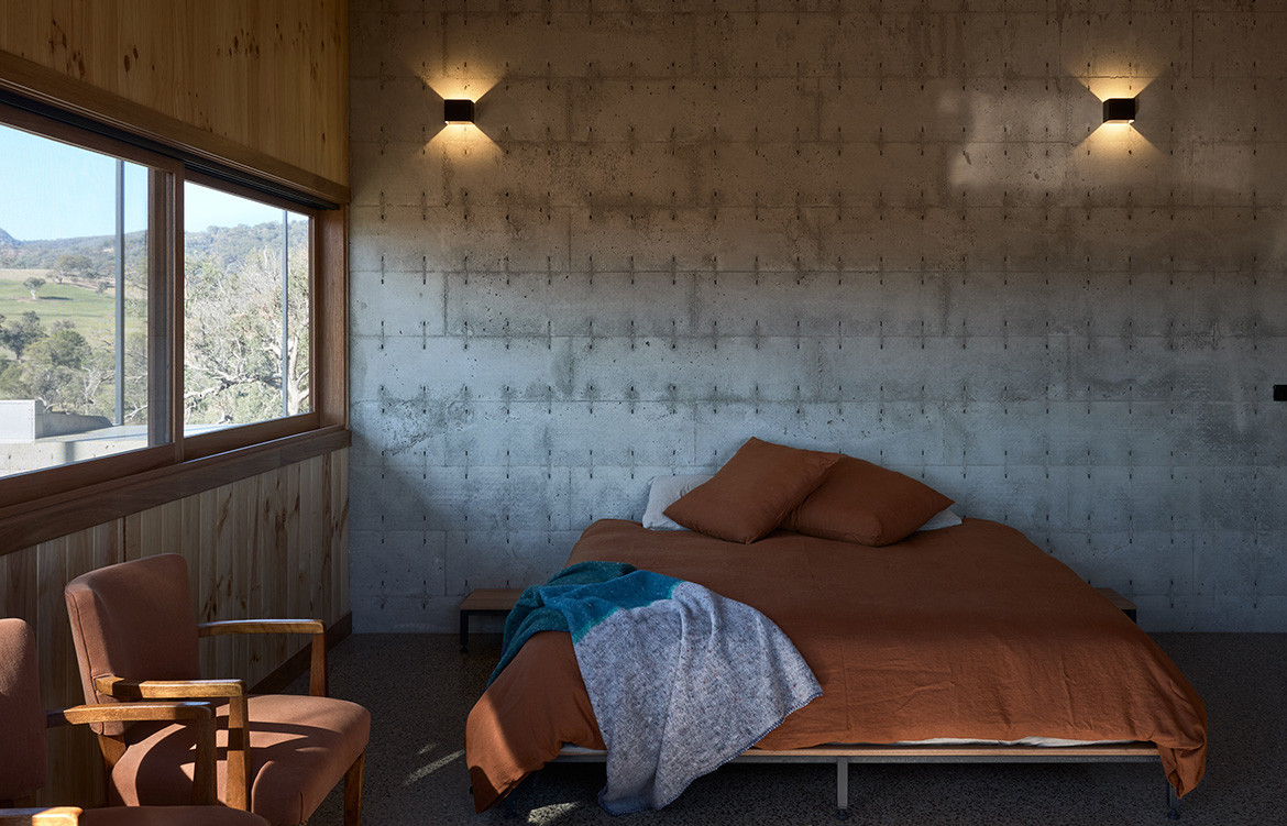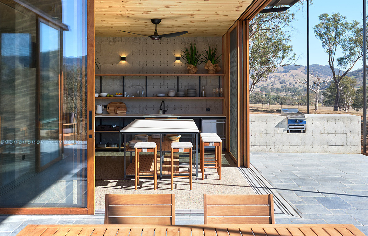Blackbutt Hardwood has been used for the doors, windows and joinery while the ceilings and awnings are finished with Radiata Pine. This gives a natural and warm feeling to the interiors and, in conjunction with the exposed concrete, a colour palette that mirrors that of the surrounding landscape.