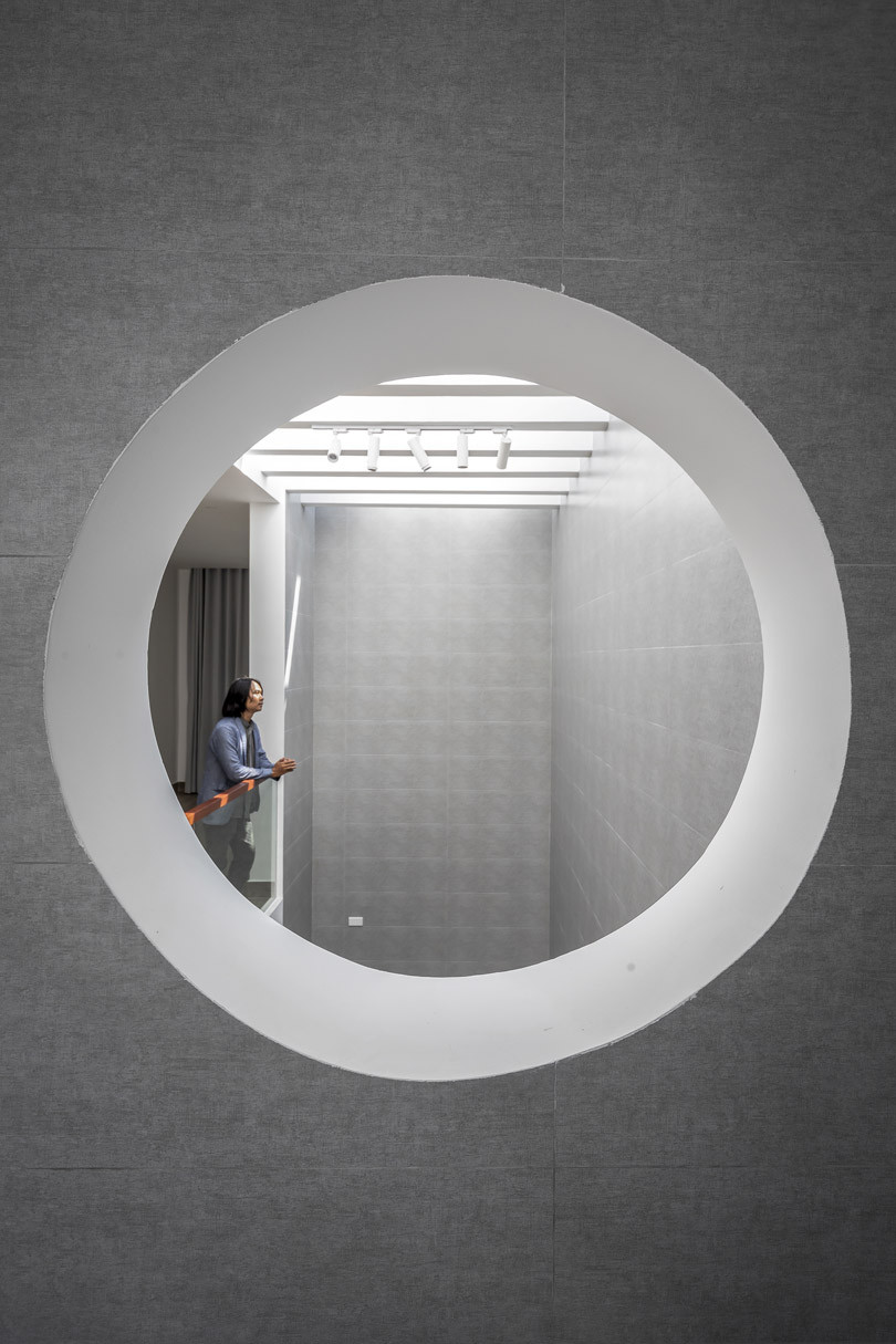 Trees and planting on the ground floor grow up through a central atrium as a way to bring nature inside – an antidote to the intensity of the city. A deliberate decision that Nguyen elaborates is necessary given the climate, “Vietnam’s climate is a humid tropical climate, especially in Ho Chi Minh City with a dense population density and dense dust, so the ventilation system for light and trees on this project is very suitable”.
