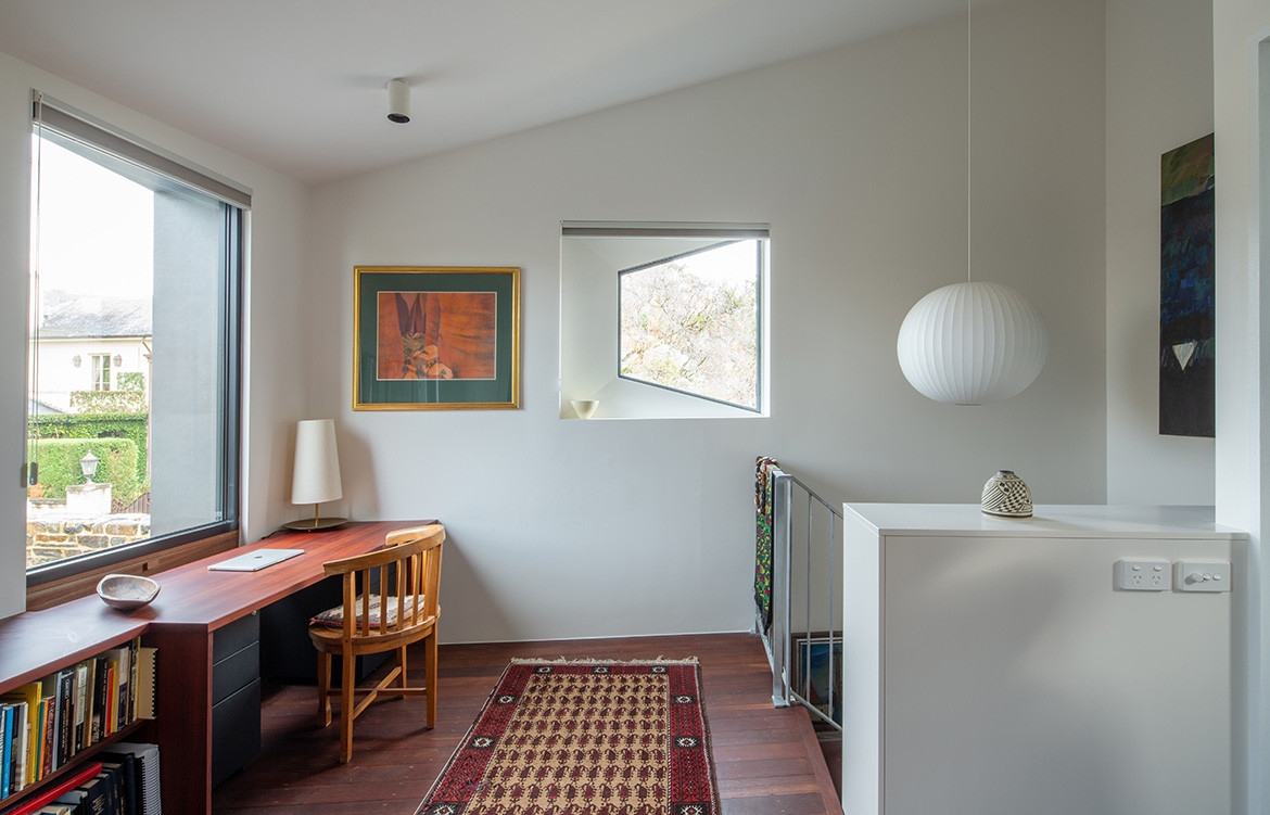 Together they created a plan to sub-divide the land to create two homes – one that could be sold to fund the construction. Both nestle comfortably in the narrow street, which regularly fills with people walking to cricket and AFL matches at the nearby Adelaide Oval.