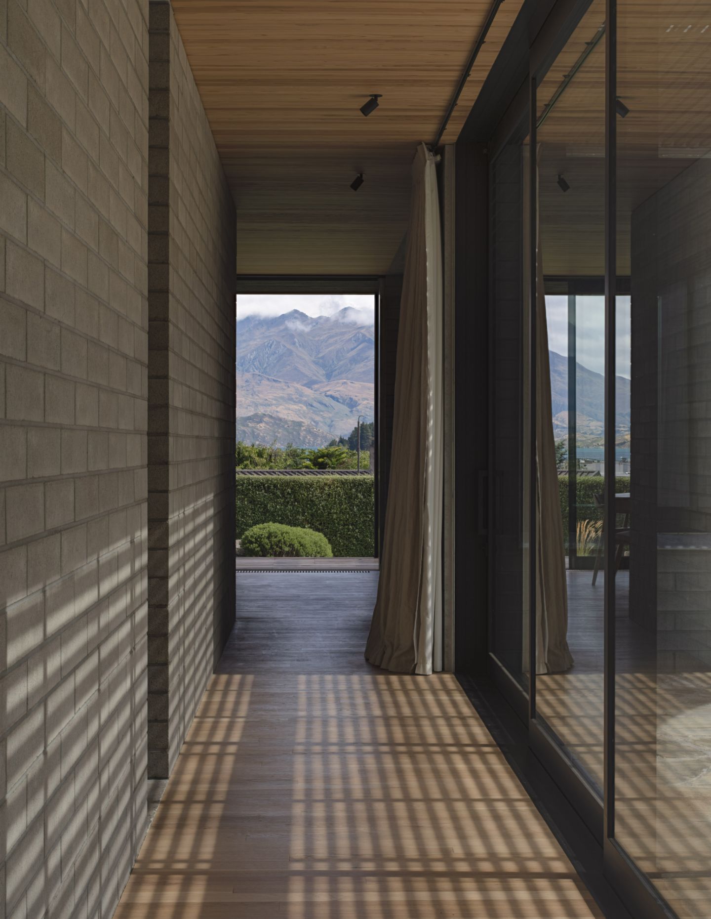 The project presents itself as a series of solid geometric forms, thoughtfully arranged to establish openness and enclosure. These forms are tied together by lightweight screen systems, courtyards and carefully placed openings – creating dynamic interplays of light and shadow within. The outcome is an urban sanctuary amidst Wānaka’s dynamic landscape, inviting the next generation to enjoy the home into the future.