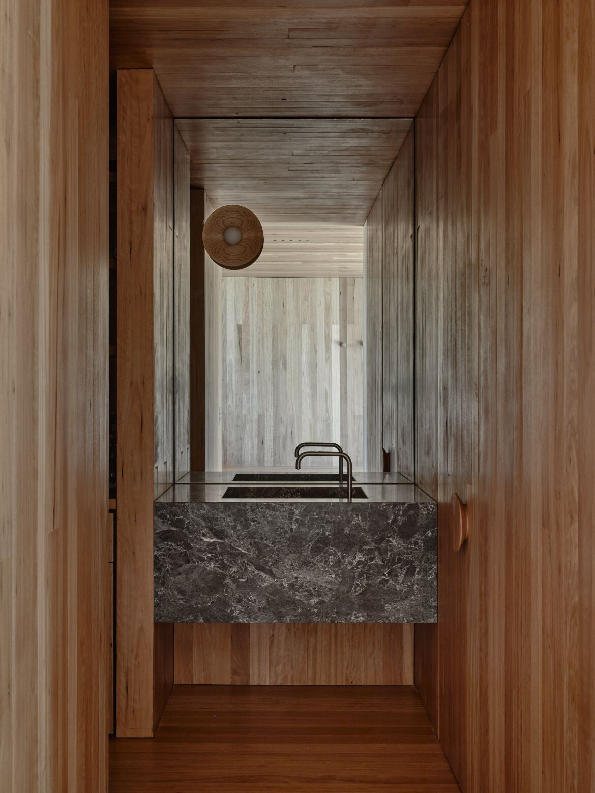 “The owners saw one of my houses in Albert Park, a single-fronted terrace that was well-imbued with timber detailing,” says Wellard, who was conscious that Somers offered a different context both in topography and in outlook, as well as in dimensions (the Somers site is approximately 1,300 square metres in area).