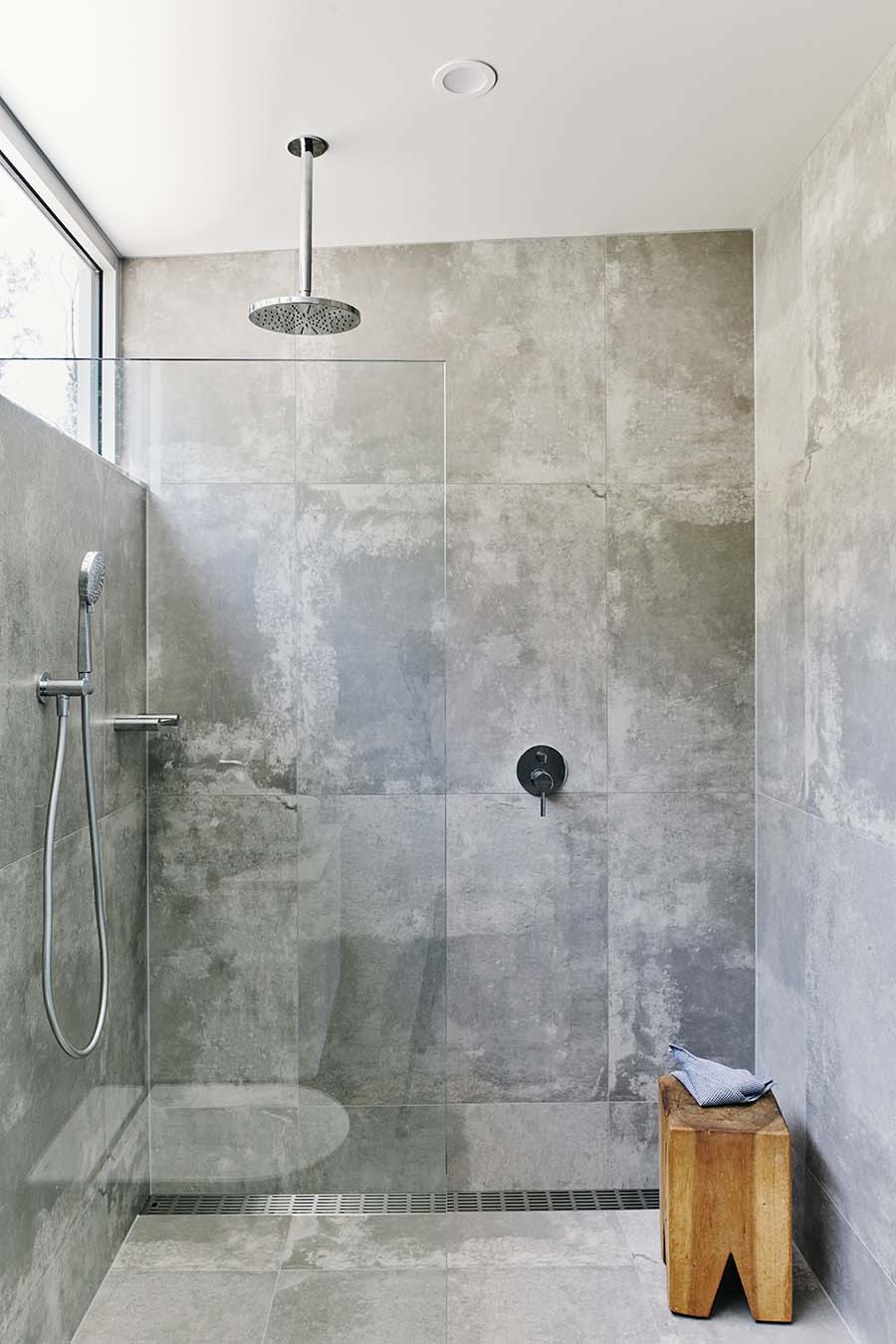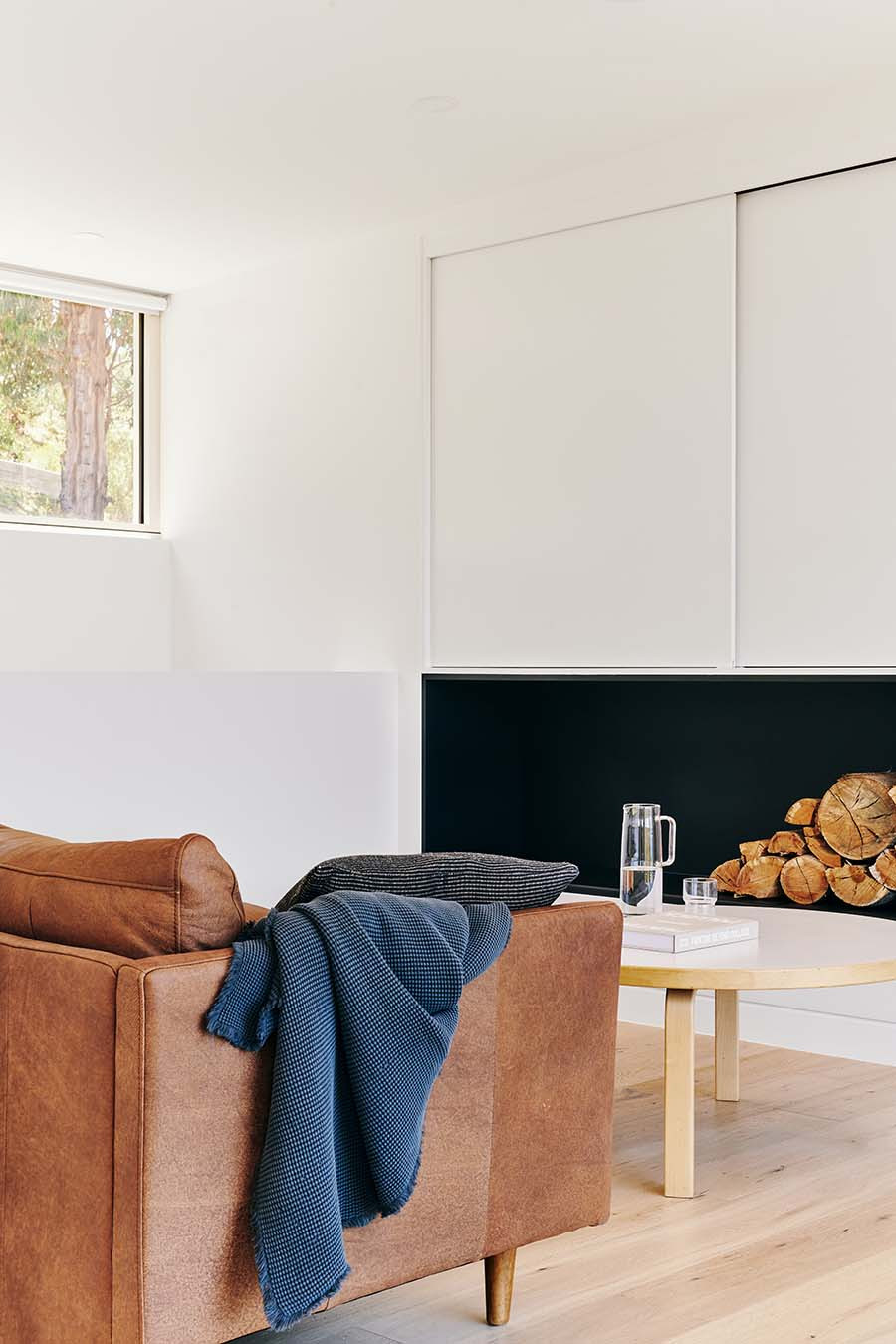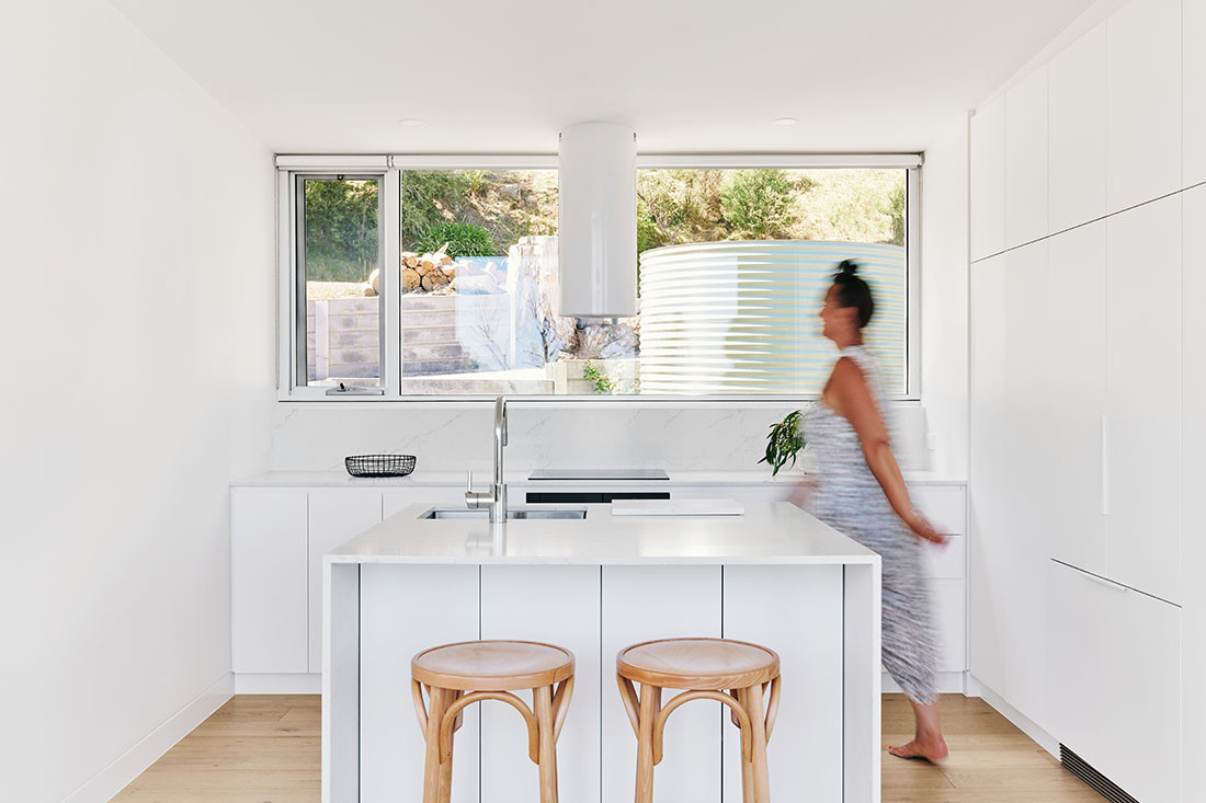 Goodman confirms that every design decision “has a reason”. The windows on the street side scale from being larger in the public areas, down to slot sized in the bathroom space, affording privacy and connection as needed. The skillion roof allows something as simple as cleaning the gutters (an important measure for bushfire prevention) to be an easier task given the steep incline on the other side of the house.