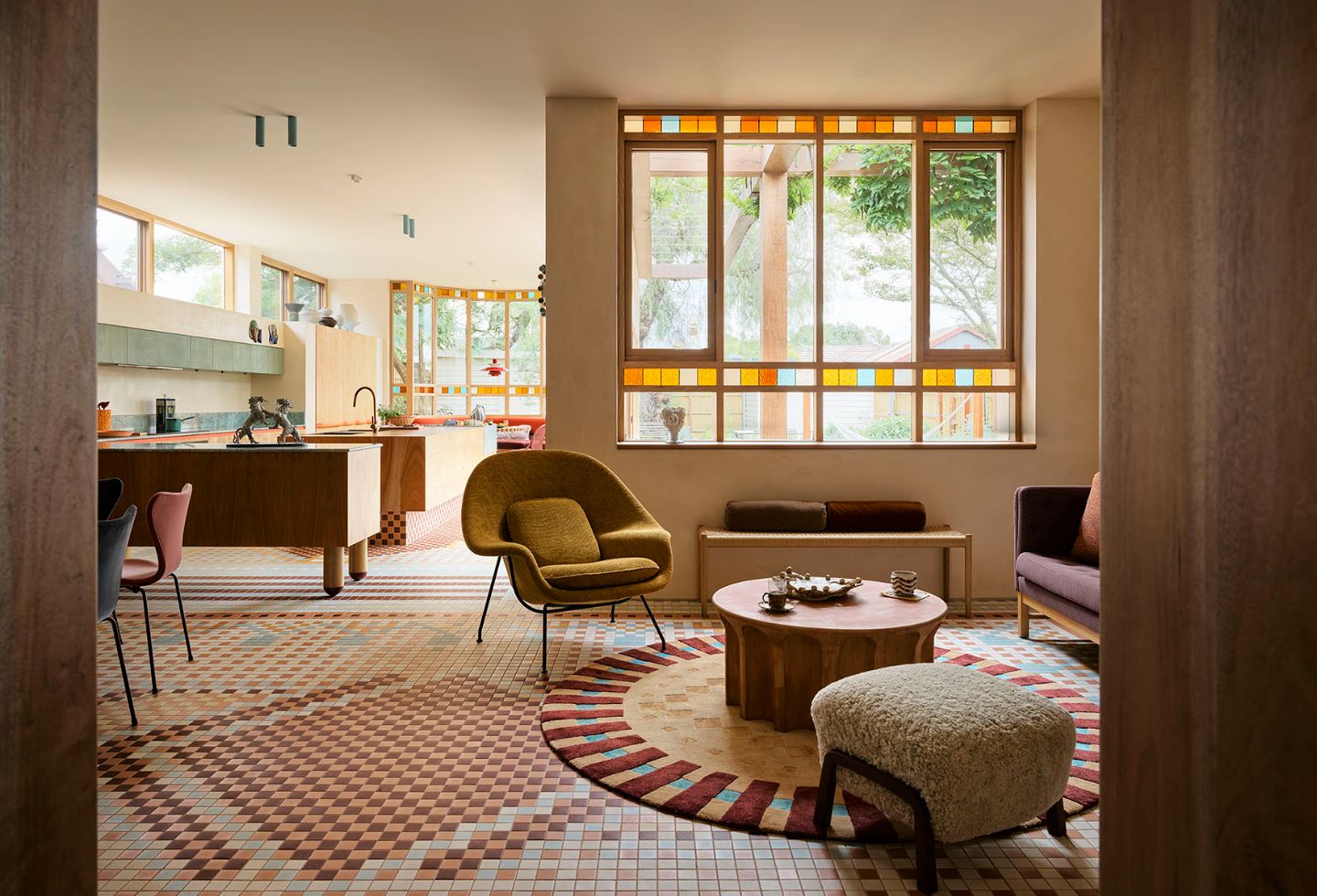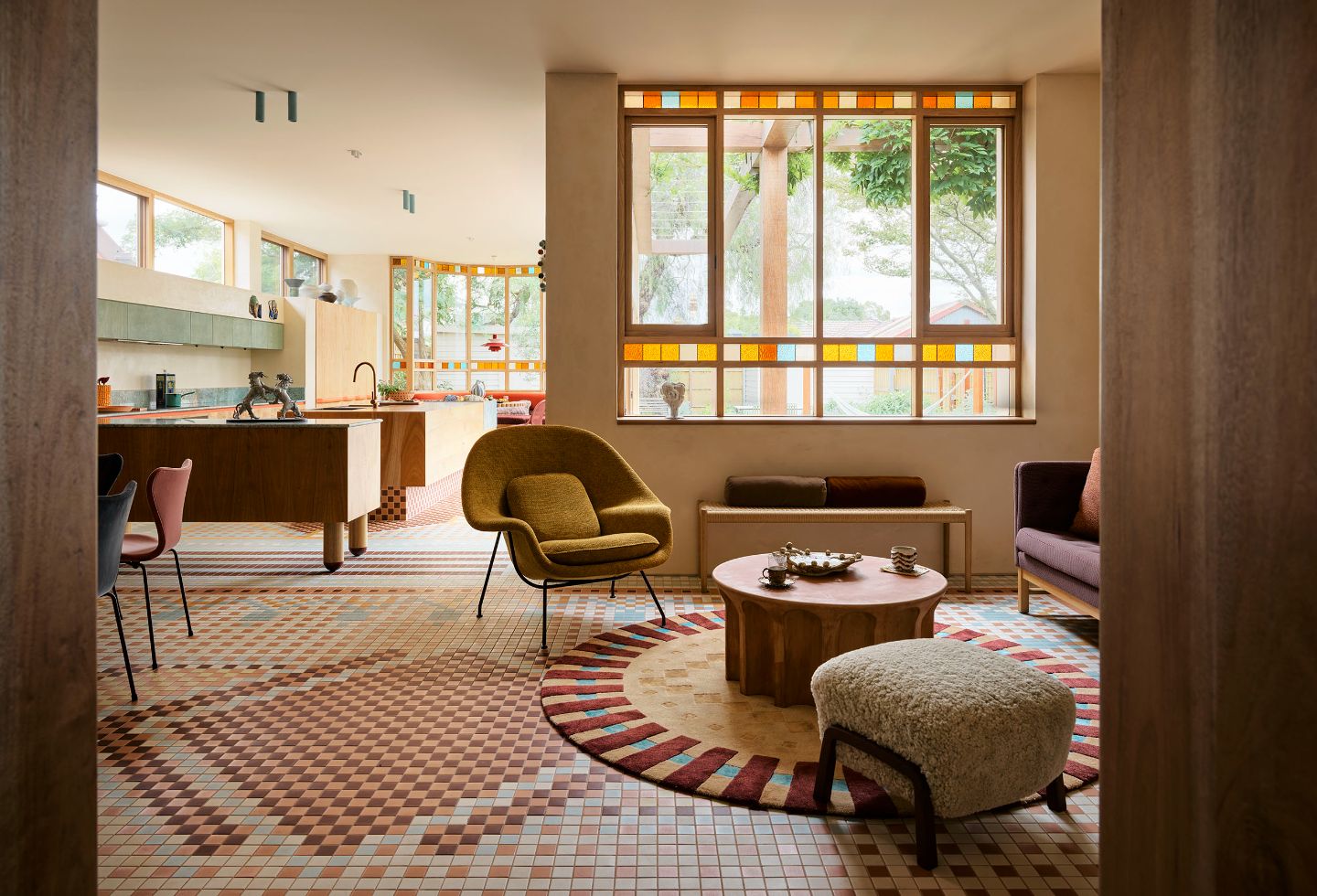 Filled with intriguing design motifs and heterodox cultural references, Mo Jacobsen is a richly beautiful house filled with colour, light and texture. It fuses the old and new to create an unusual home in which the clients will nevertheless feel very much at home.