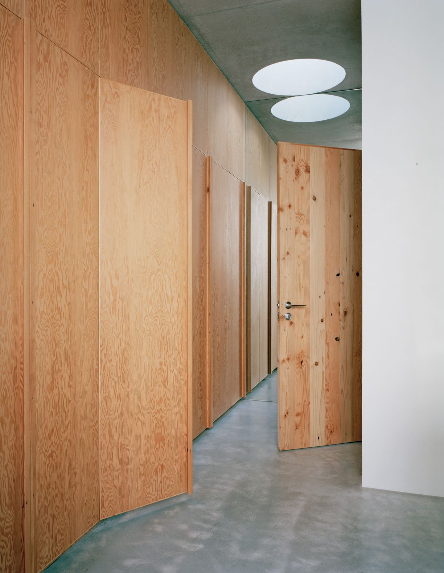 Inside, the material palette is brutalist in its expression, mostly using the grey-hued concrete on the floors and ceilings. On the internal walls, the recycled bricks are finished in a natural render, unpainted and sealed with wax. While the Oregon roof framing is dispensed throughout, re-used for the kitchen island and all internal doors, also finished with wax.