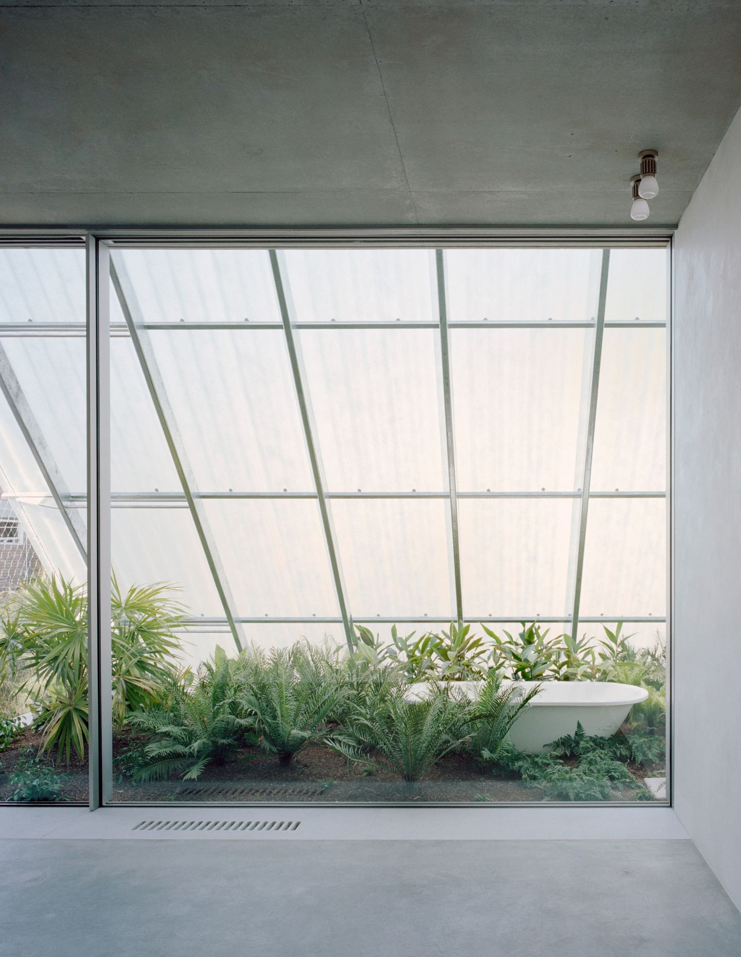 Operable wall-size windows by Vitrocsa invite the carefully composed gardens within. On the top floor, fibreglass screens create an immersive and private sanctuary from the busy streets beyond, posing the added benefit of stepping around council setback controls. These little pockets extend the bedrooms and bathrooms into the foliage – blending the functionality, such as the outdoor bath settled within the ferns.